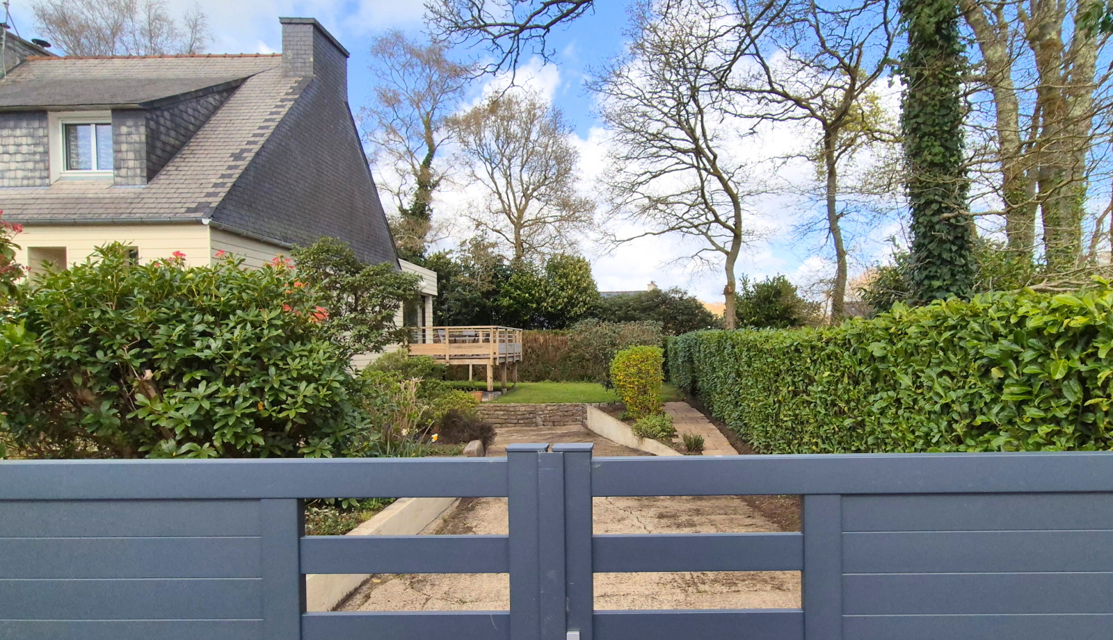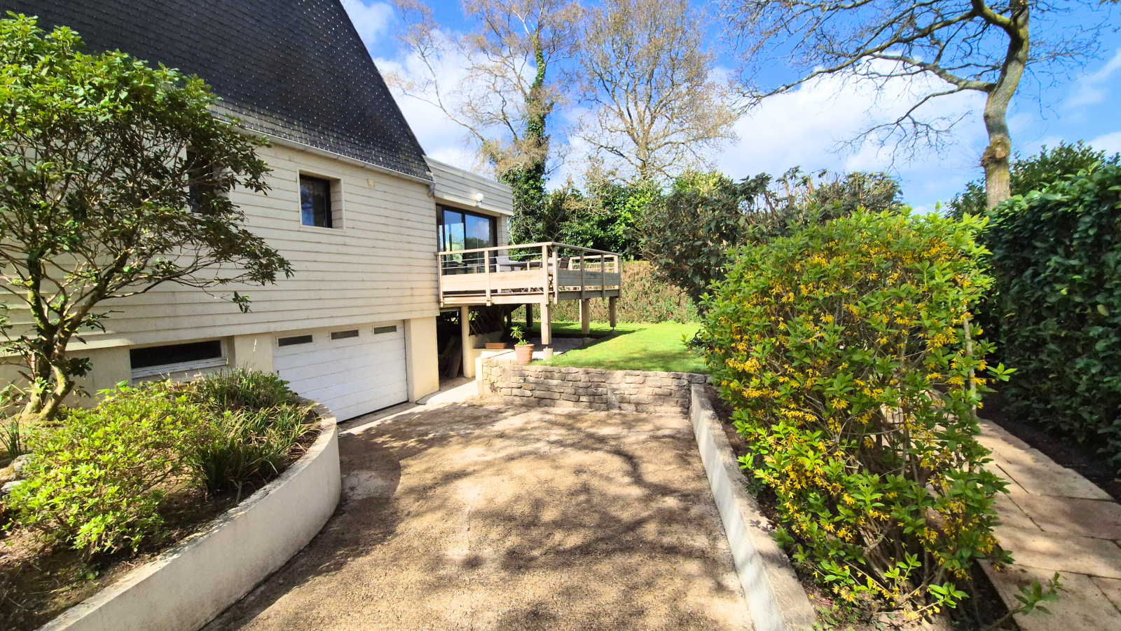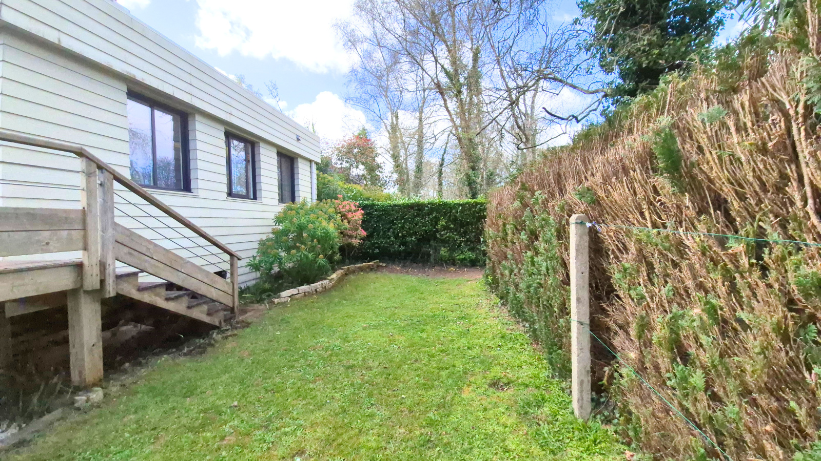 Vous aimerez beaucoup cette magnifique extension sur l'arrière prolongée d'une terrasse en bois sur pilotis sans aucun vis à vis !