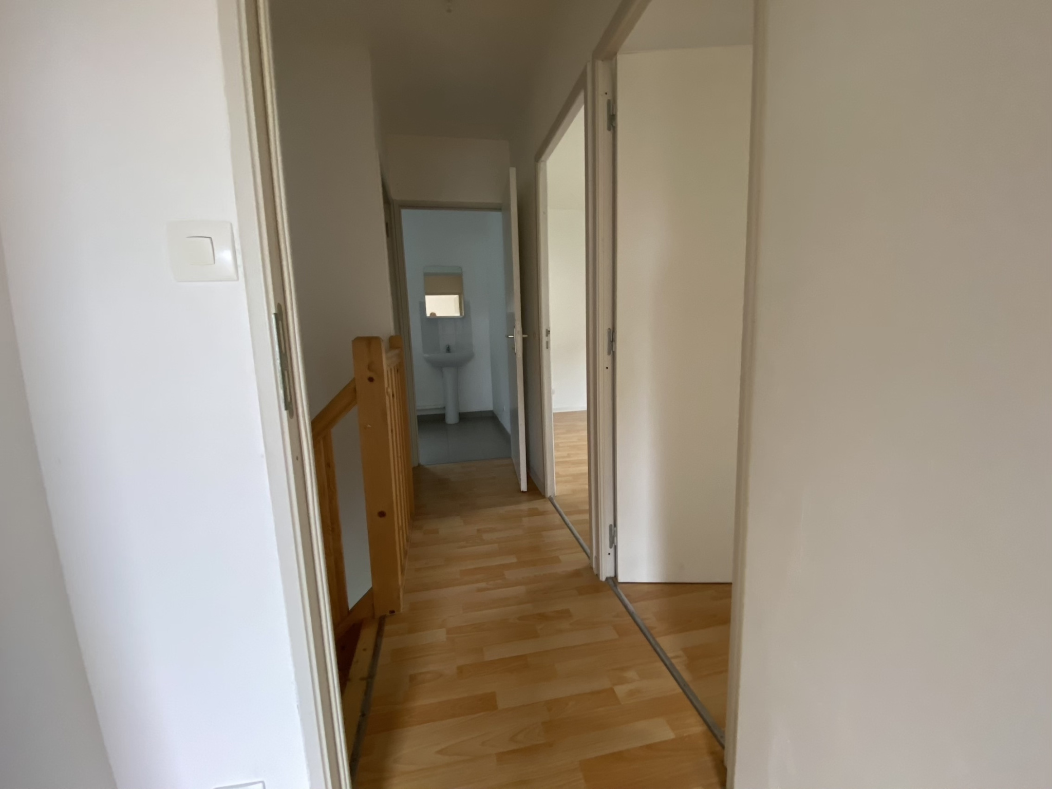 > A l’étage : 3 chambres (11, 10,5 et 9 m2) toutes avec grand placard ; salle de bains avec baignoire, wc séparé.