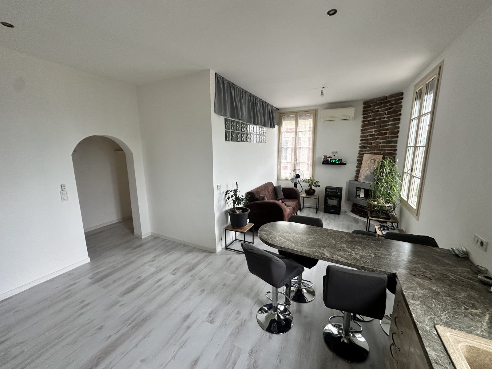 Entrée avec dégagement déservant 2 chambres, vaste pièce à vivre avec cuisine ouverte aménagée, et coin salon avec cheminée à insert, vaste salle de douche avec douche à l'italienne et WC indépendant.