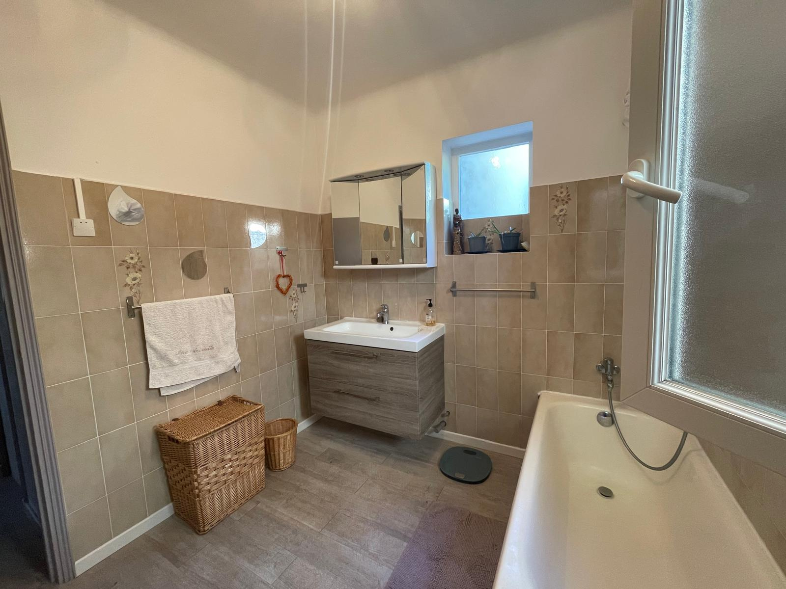 Un couloir dessert 2 chambres et une salle d'eau. Une dalle sous le toit pourrait permettre un agrandissement avec un étage supplémentaire.
