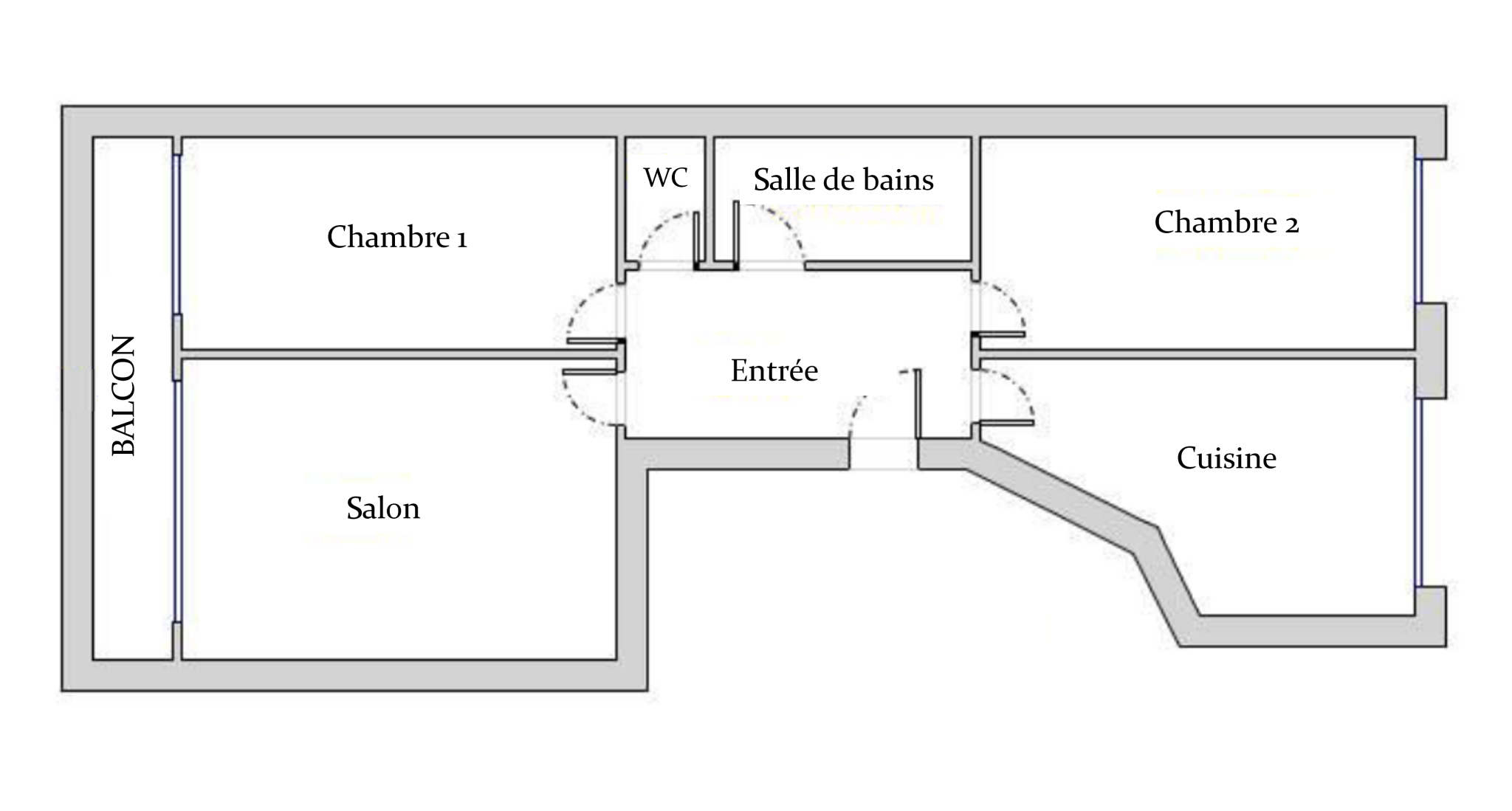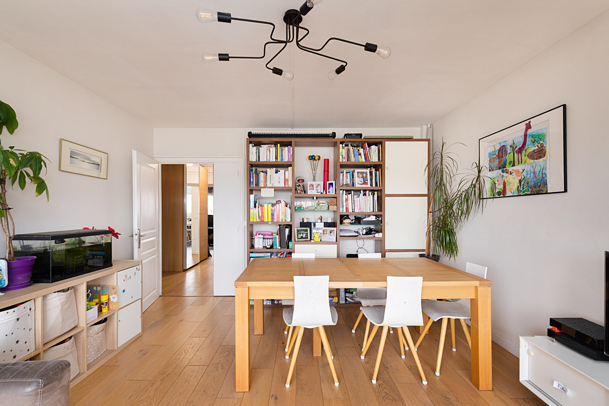 Le plan de l'appartement peut être adapté pour créer un vaste séjour avec cuisine ouverte de quasiment 35m².