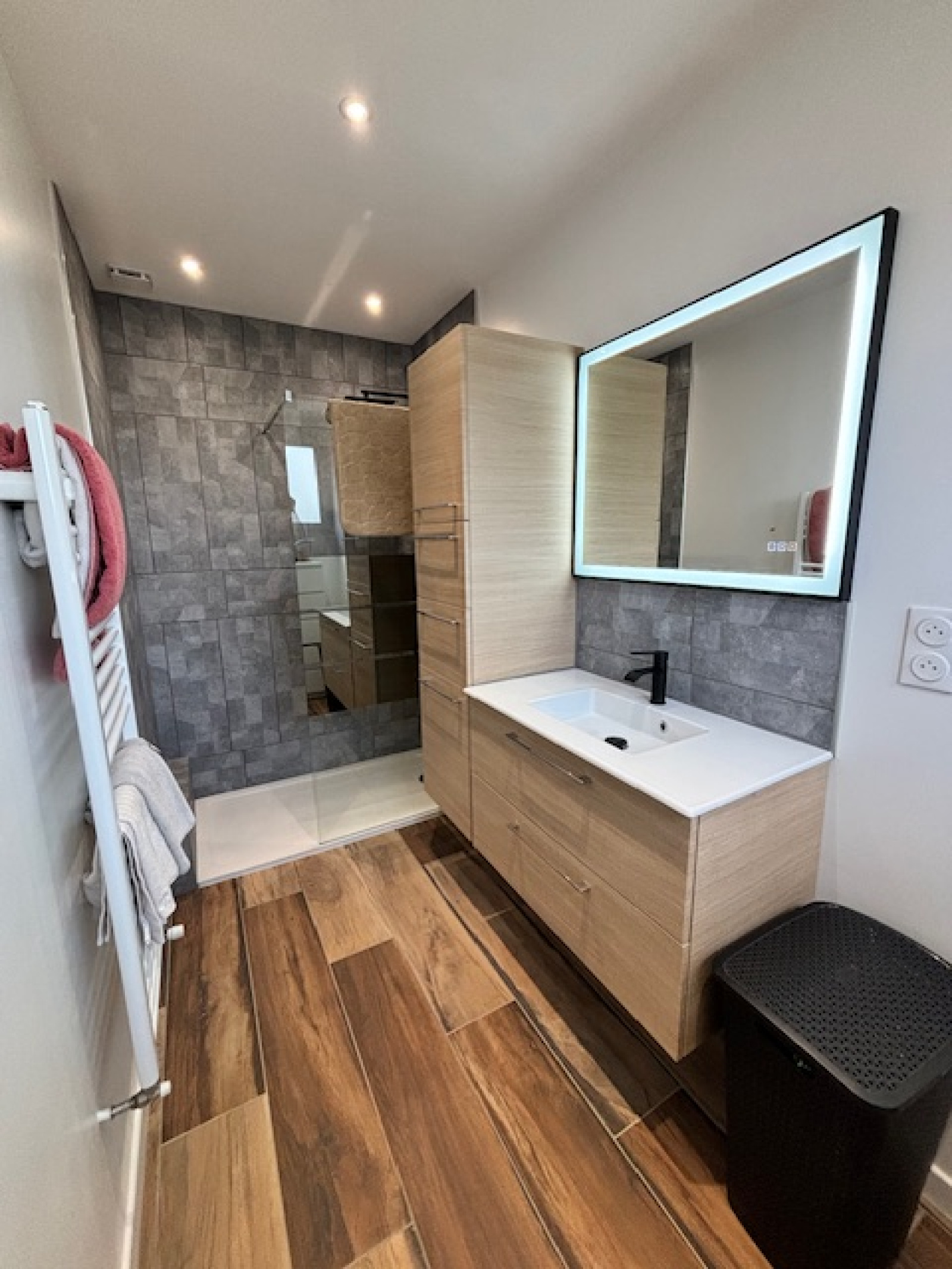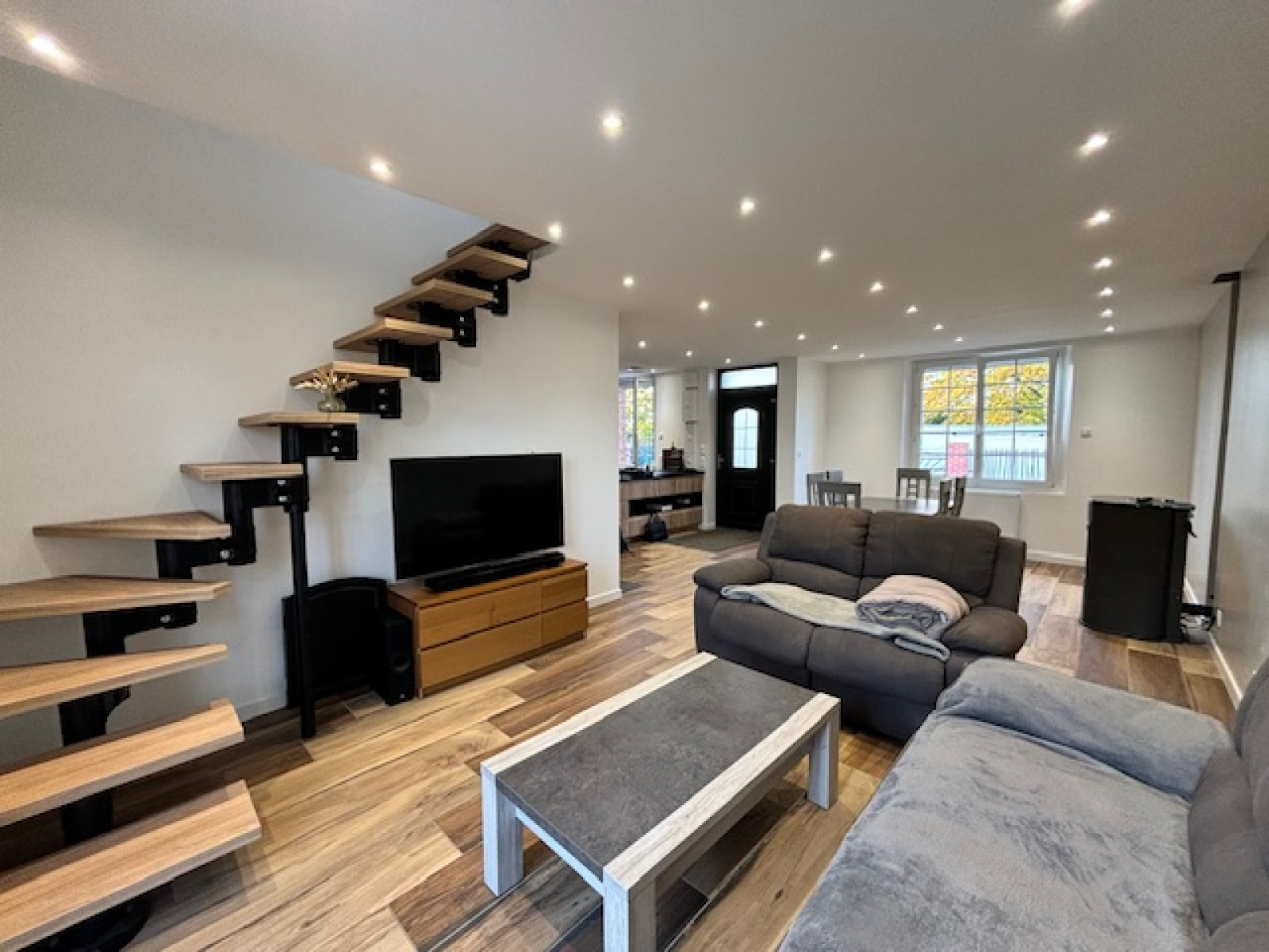 Bonjour Aujourd'hui Romain Pessey, Expertimo Elbeuf vous propose à la vente EN EXCLUSIVITÉ un pavillon entièrement rénové de 96m2 carrez (130m2 sol) et à quelques pas du centre ville sur la commune de Saint Aubin les Elbeuf. Ce bien classé C au DPE vous propose des matériaux et équipements de qualité. Il se compose, au rez de chausé d'un grand séjour ouvert salle, salon, d'une cuisine équipée, aménagée avec four, plaque, hotte, frigo, micro ondes et lave vaisselle, d'une suite parentale avec une salle de douche, dressing, 1 wc séparé et l'accès à la cave 30m2. Au deuxième étage nous retrouvons, un palier pouvant être transformé en petite chambre, 2 chambres et une salle de bain avec wc. En extérieur, nous avons un garage 15m2, 1 atelier 15m2, 2 dépendances 7m2 x2 et 1 parcelle d'environ 1000m2 dont une parcelle de 500m2 constructible. Du côté équipement, les huisseries sont en PVC double vitrage, volets roulants électriques, chaudière à condensation neuve, poêle à granulés neuf, porte de garage bois, portail motorisé en fer. Tout à l'égout et impôt foncier d'environ 700€. Aucun travaux n'est à prévoir, tout est déjà fait, il suffit de poser vos meubles !