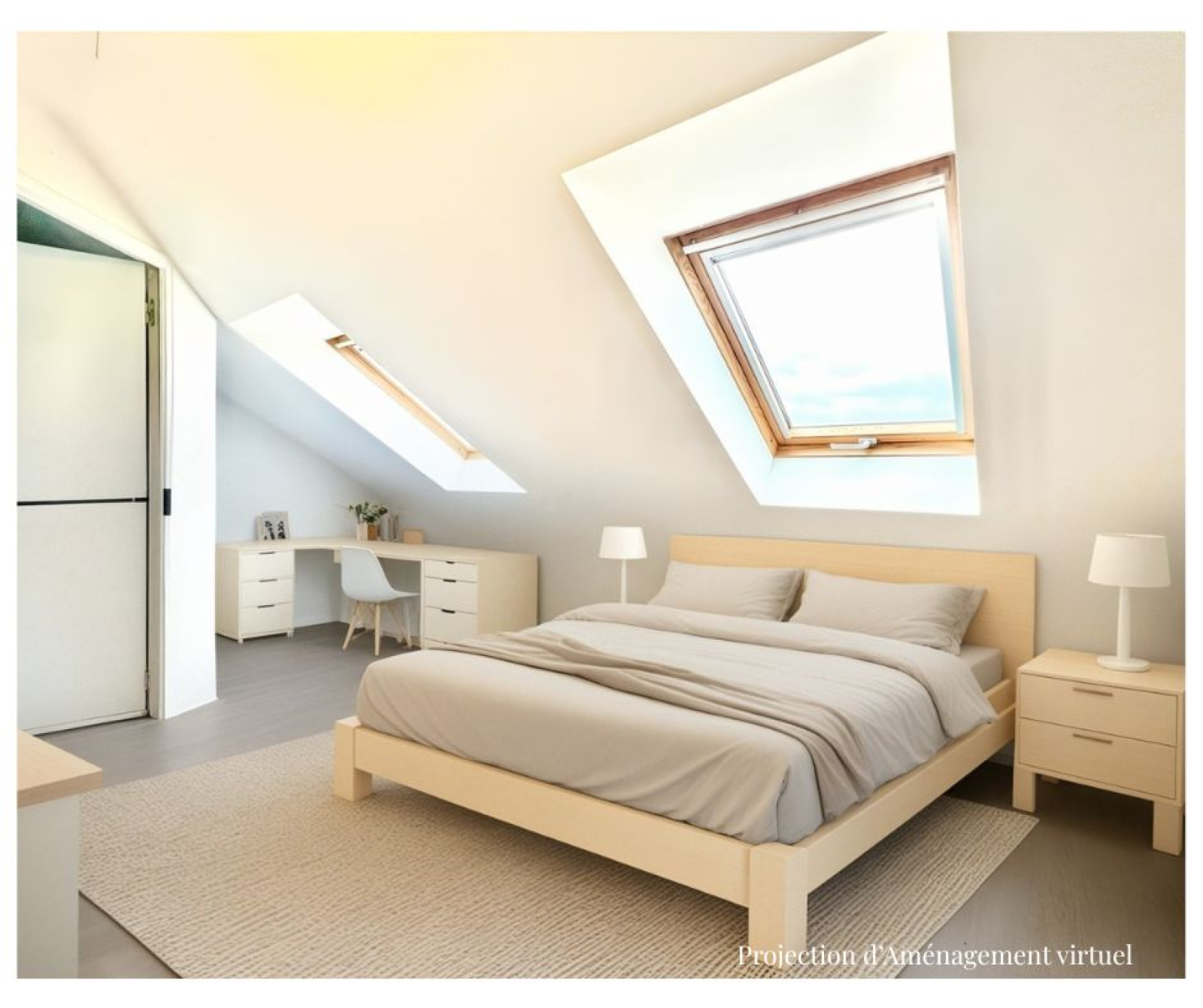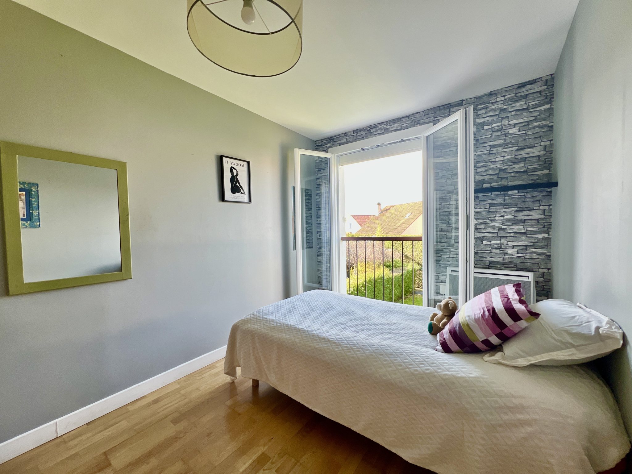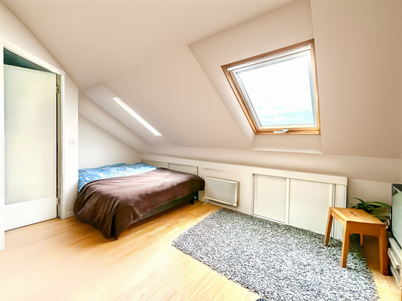 Les combles ont été aménagés en une suite parentale confortable, comprenant une chambre, de nombreux rangements et une salle d’eau avec WC, offrant ainsi un espace nuit supplémentaire appréciable.