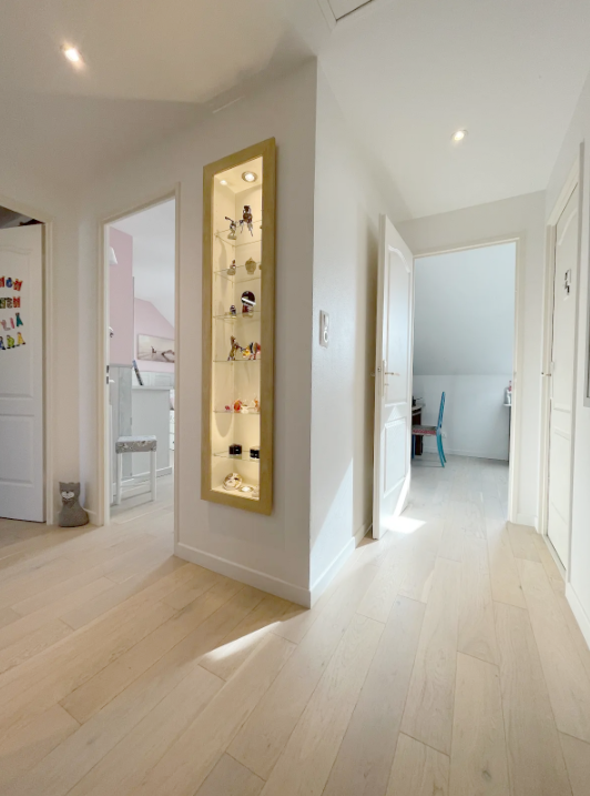 Le 1er vous propose un dégagement, une chambre parentale de 14.92 m2 avec douche, placards et dressing, 2 autres chambres (11 à 12m2) dont une avec grand placard, une autre chambre de 14m2 avec grand placard et une salle de jeux attenante de 17m2 au sol, une salle de bains balnéo, WC indépendants.