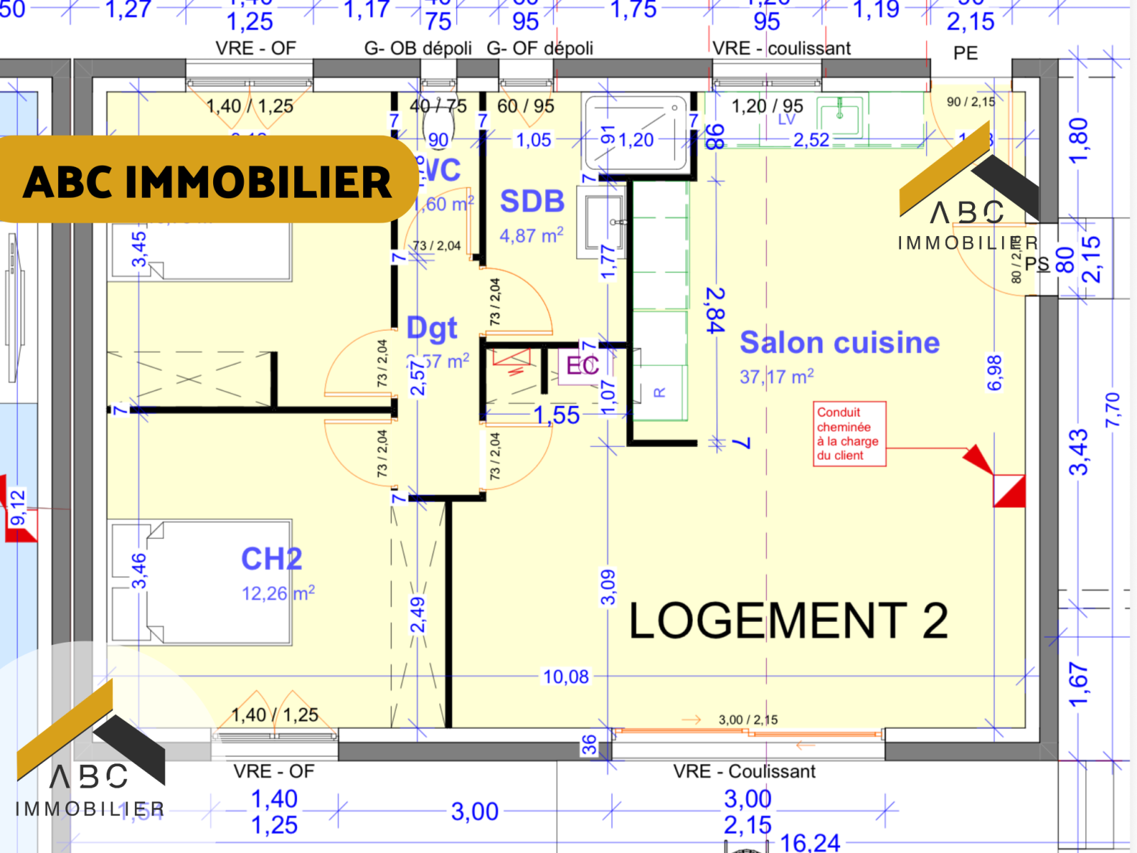 Elle se compose d’un bel espace de vie de 37m2, de deux chambres, d'une belle salle d'eau et de WC indépendants.