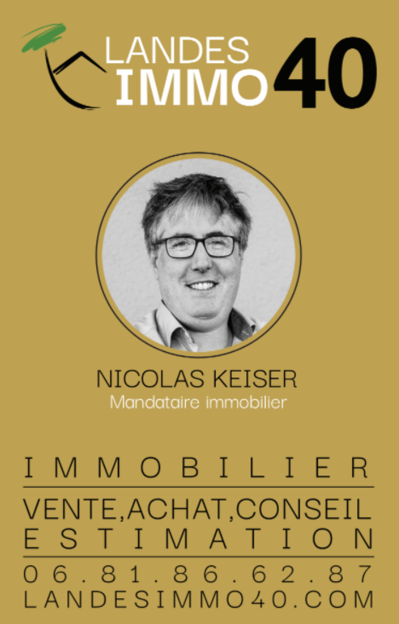 Pour plus d'informations contact@landesimmo40.com. Cette annonce a été rédigée par Nicolas Keiser, agent mandataire Expertimo, travaillant sous l'enseigne Landes Immo 40, immatriculé au RSAC de Dax sous le numéro 537 481 954.