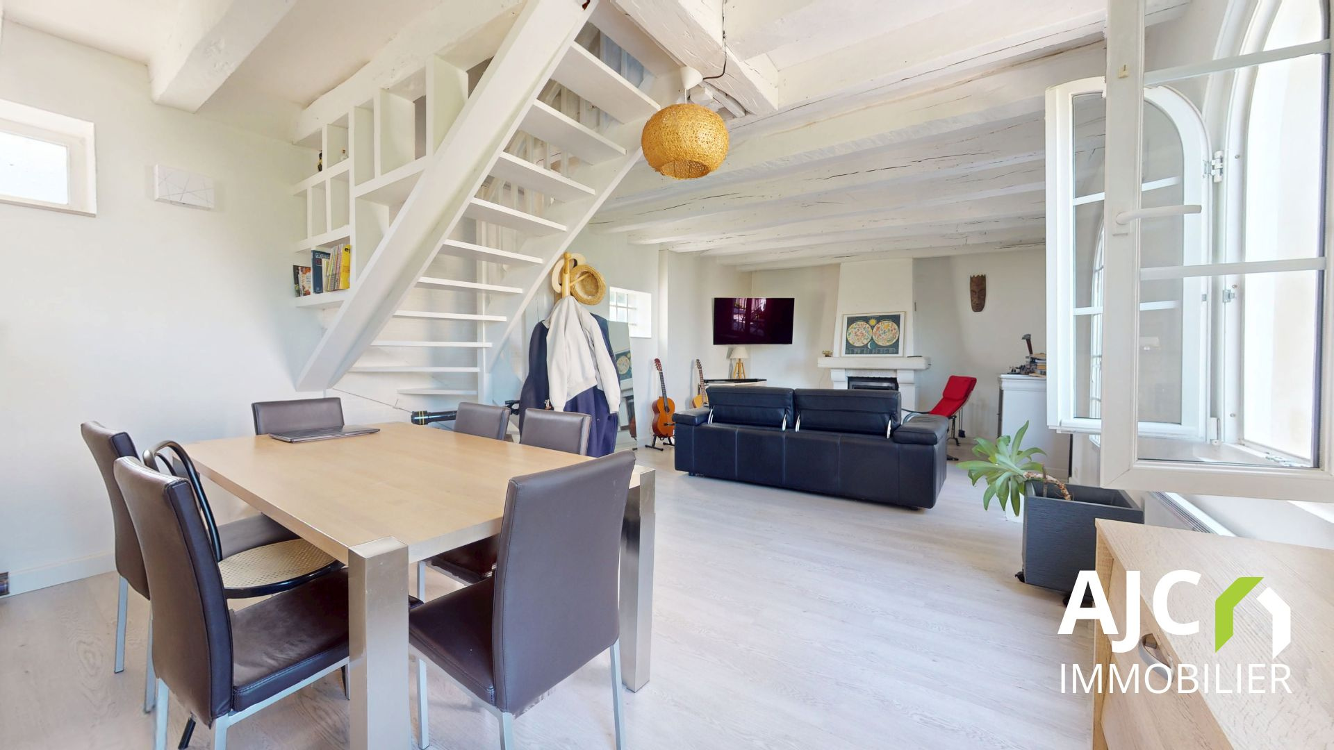 L'accès au 1er étage est également possible via une terrasse agréable ensoleillée, ouvrant sur une vaste pièce de vie lumineuse avec insert, et une cuisine ouverte, aménagée et équipée.