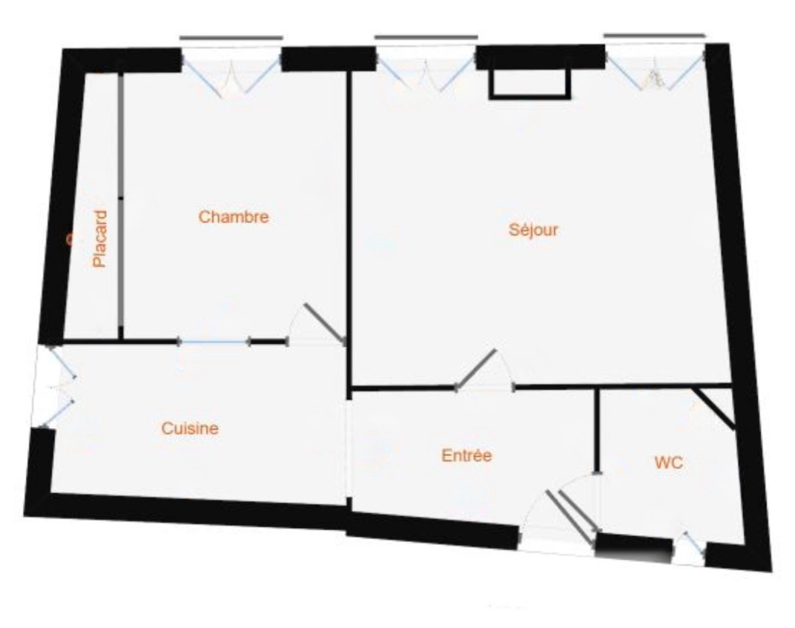 Ce bien se compose d'une entrée, d'un séjour, d'une cuisine séparée, d'une chambre et d'une salle d'eau avec W.C. Il est situé au premier étage.