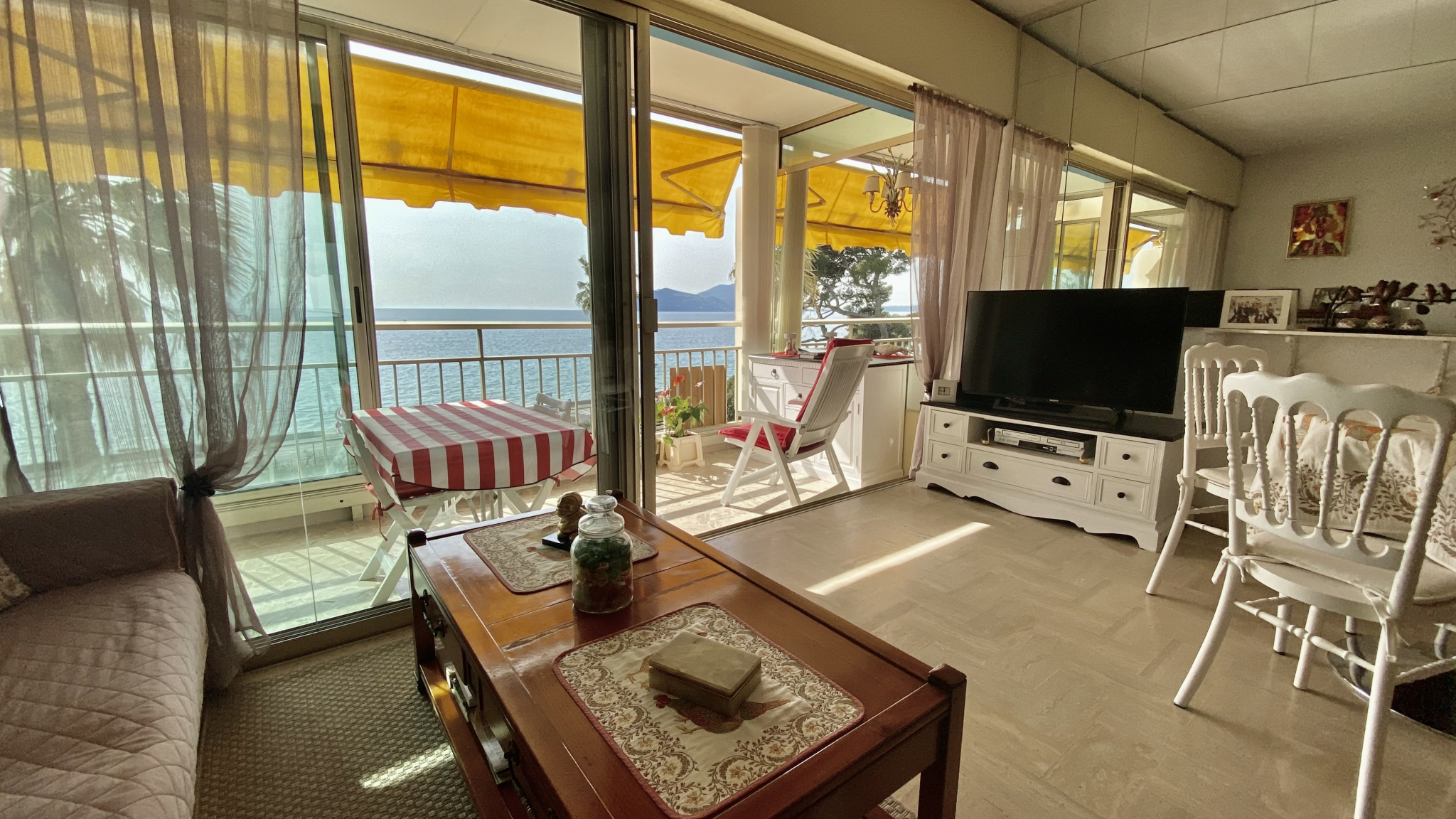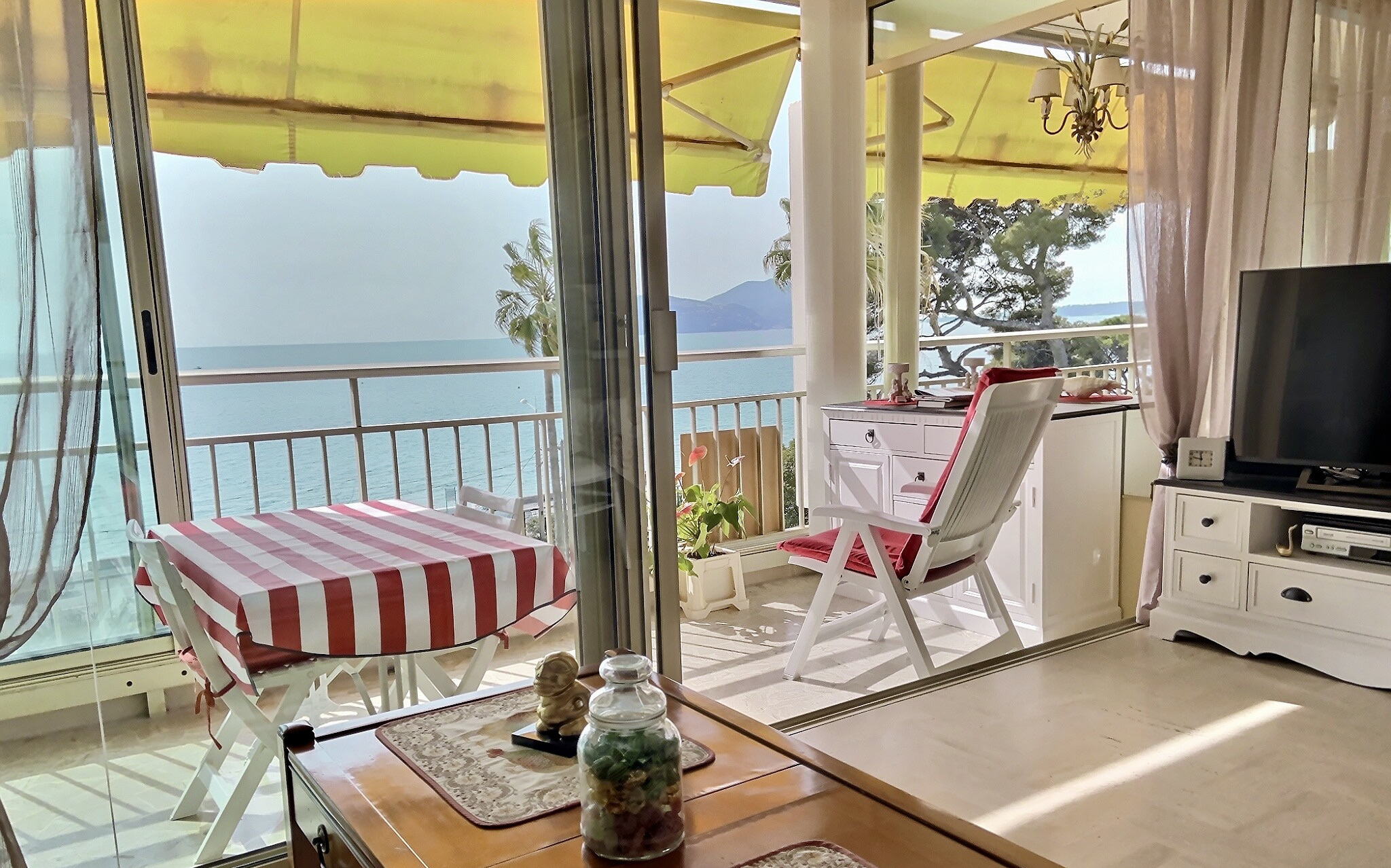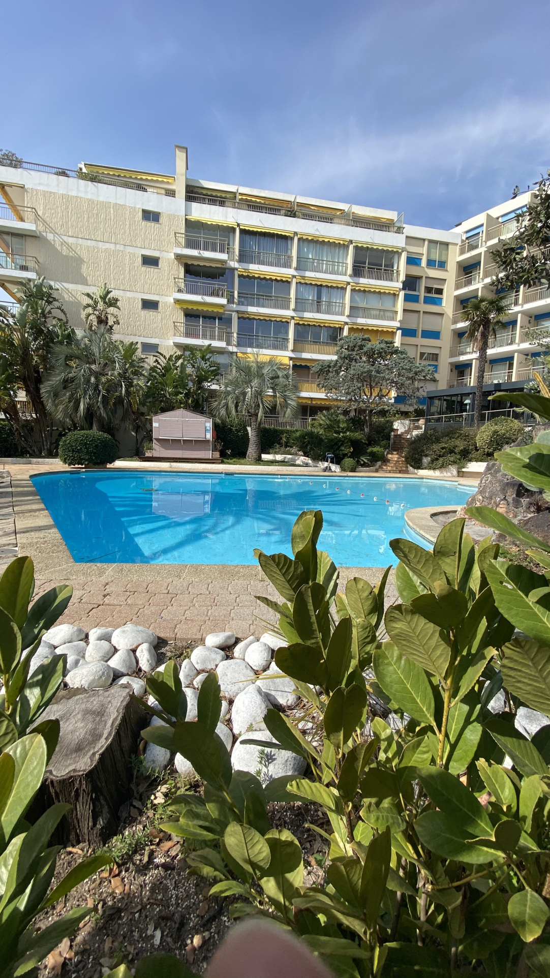 Cannes, en front de mer, dans une très belle résidence avec accès piscine et tennis, très beau studio de 38 m2 environ avec terrasse et magnifique vue, de la baie de Cannes jusqu'à Théoule.