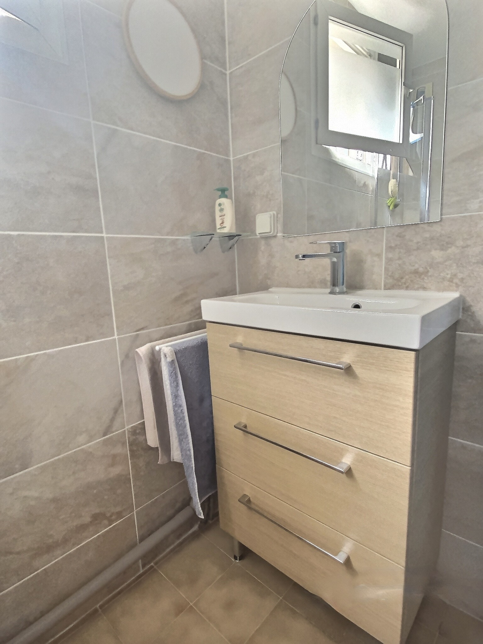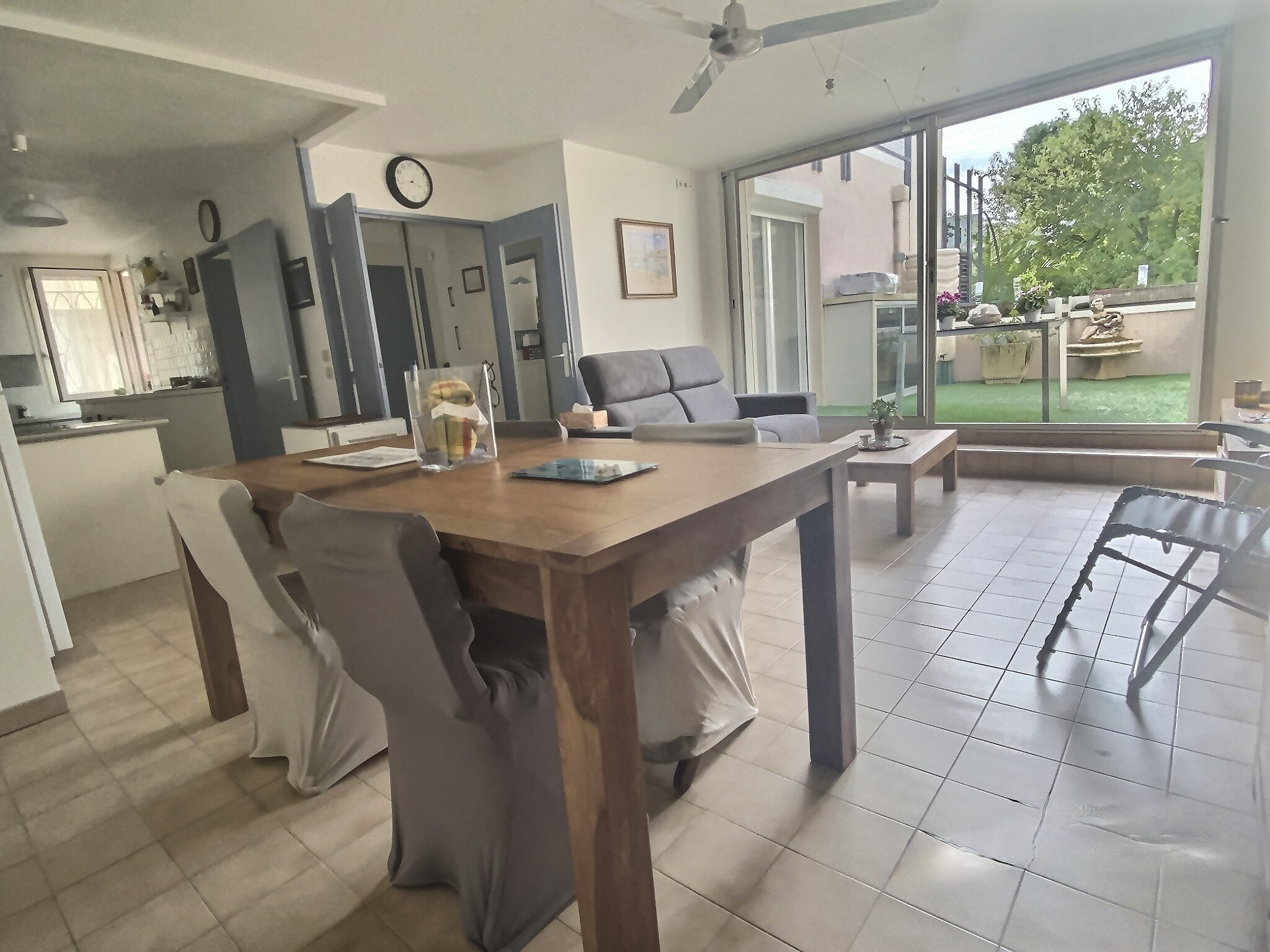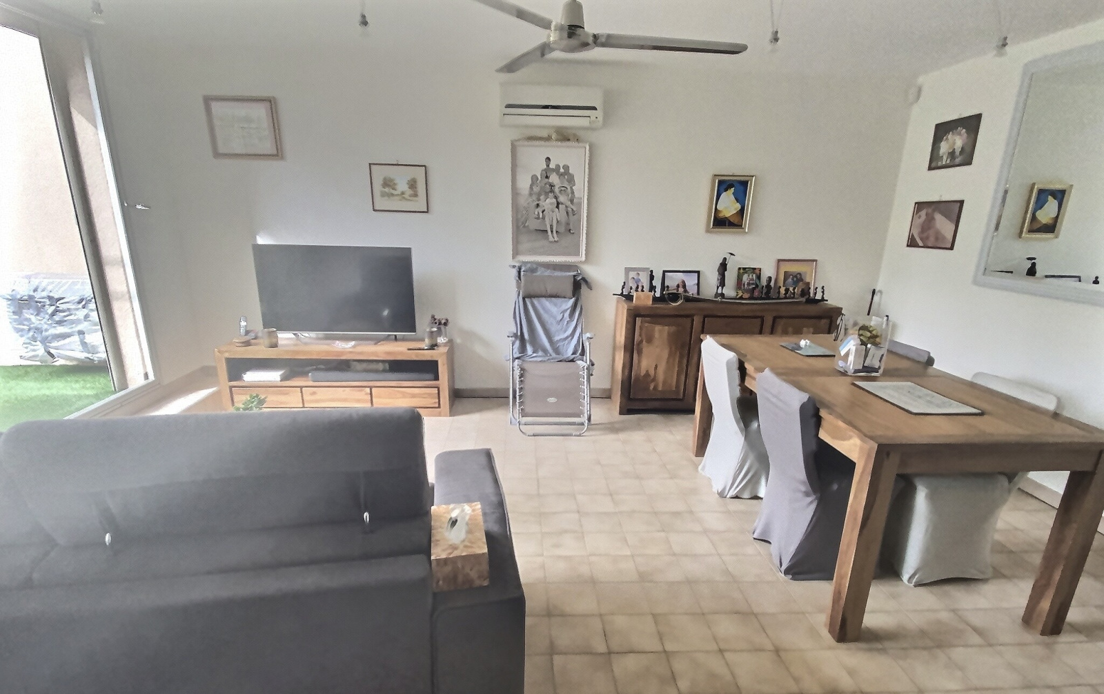 Il se compose d'une entrée avec placards, un grand séjour lumineux avec climatisation et accès sur une grande terrasse plein sud, une cuisine américaine équipée, 3 chambres avec accès sur une 2ème grande terrasse plein sud, une sdb, un wc séparé.Â