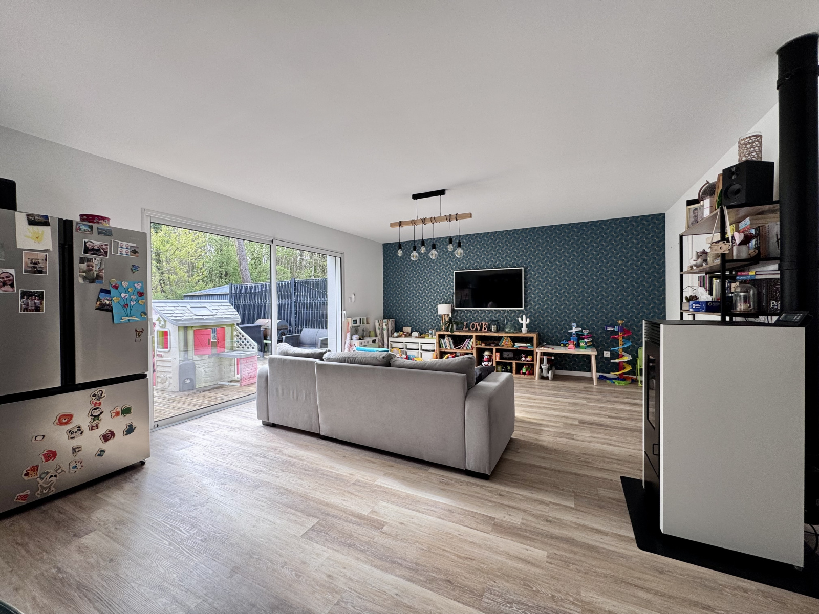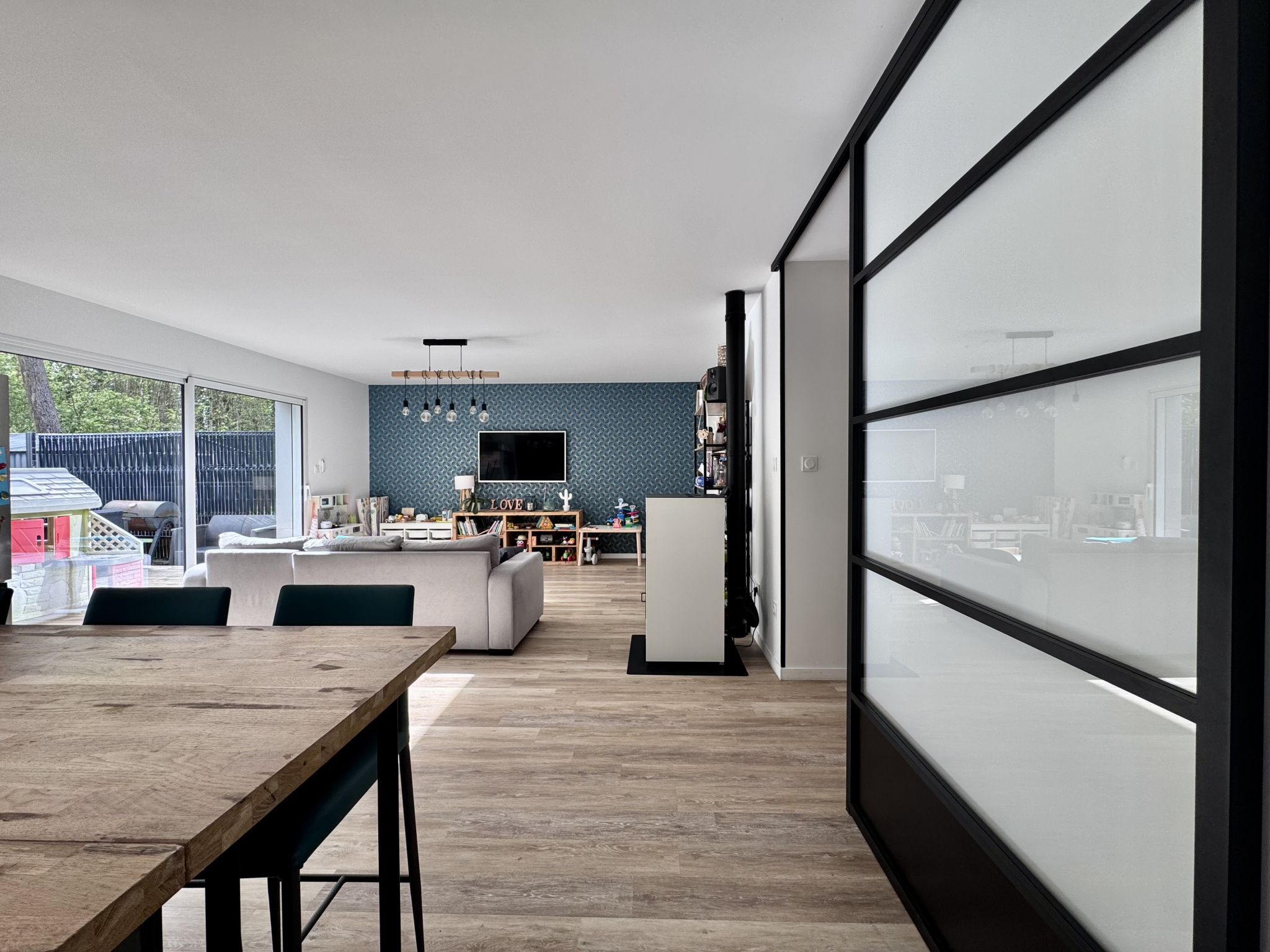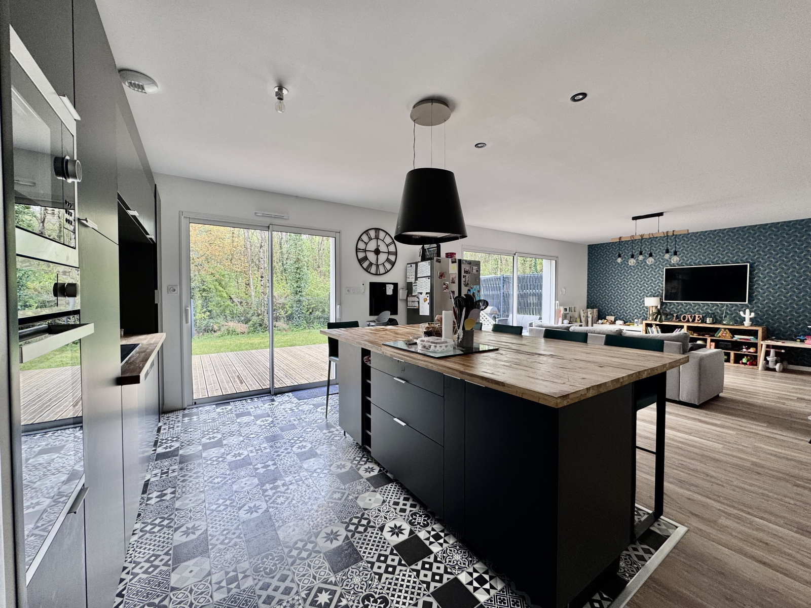 Dès l'entrée, laissez-vous séduire par un espace de vie lumineux de 44 m². La cuisine, entièrement aménagée et équipée, s'ouvre sur un salon baigné de lumière grâce à ses deux baies vitrées donnant directement sur de belles terrasses en bois. C’est l’endroit idéal pour vos soirées en famille ou entre amis !