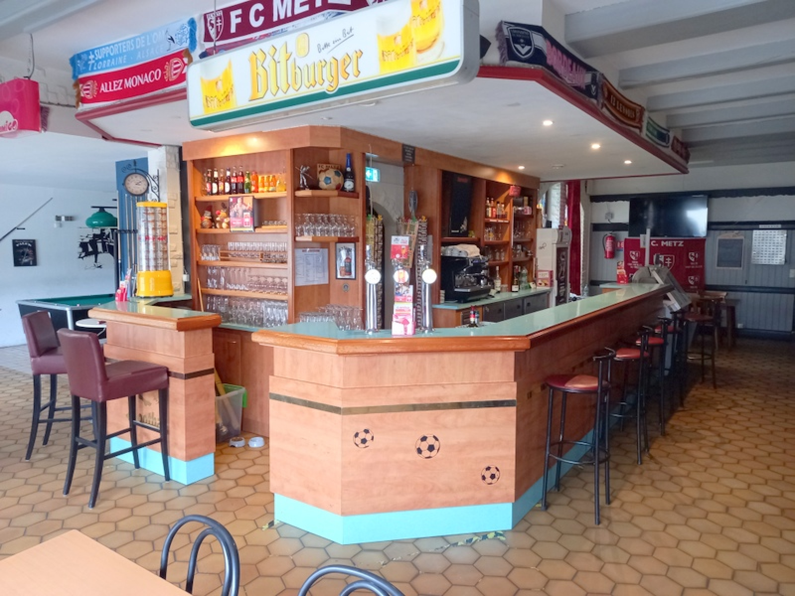 - d'un café (avec possibilité de restauration) avec cuisine et salle de billard ; actuellement exploité avec 3 salariés, rapidement libéré ; siège du billard américain de précision ;