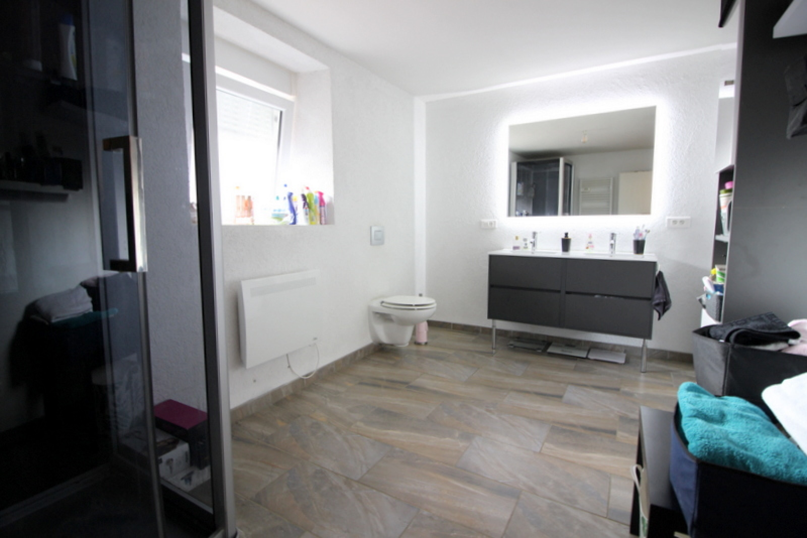 - d'un très bel appartement entièrement rénové de type F6 de près de 150 m², comprenant un salon-séjour-cuisine, une salle de bains, un débarras, quatre chambres ;