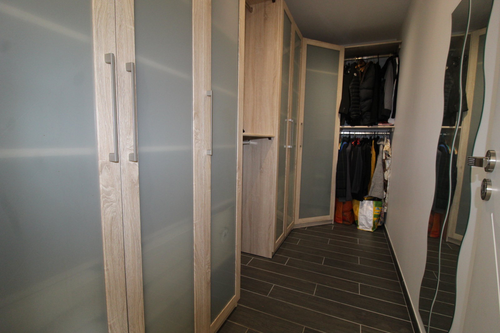Le rez-de-chaussée abrite également un coin nuit comprenant une chambre confortable avec son dressing, une salle d’eau moderne et un WC indépendant. Le chauffage au sol procure une chaleur douce et homogène, renforçant la sensation de confort.