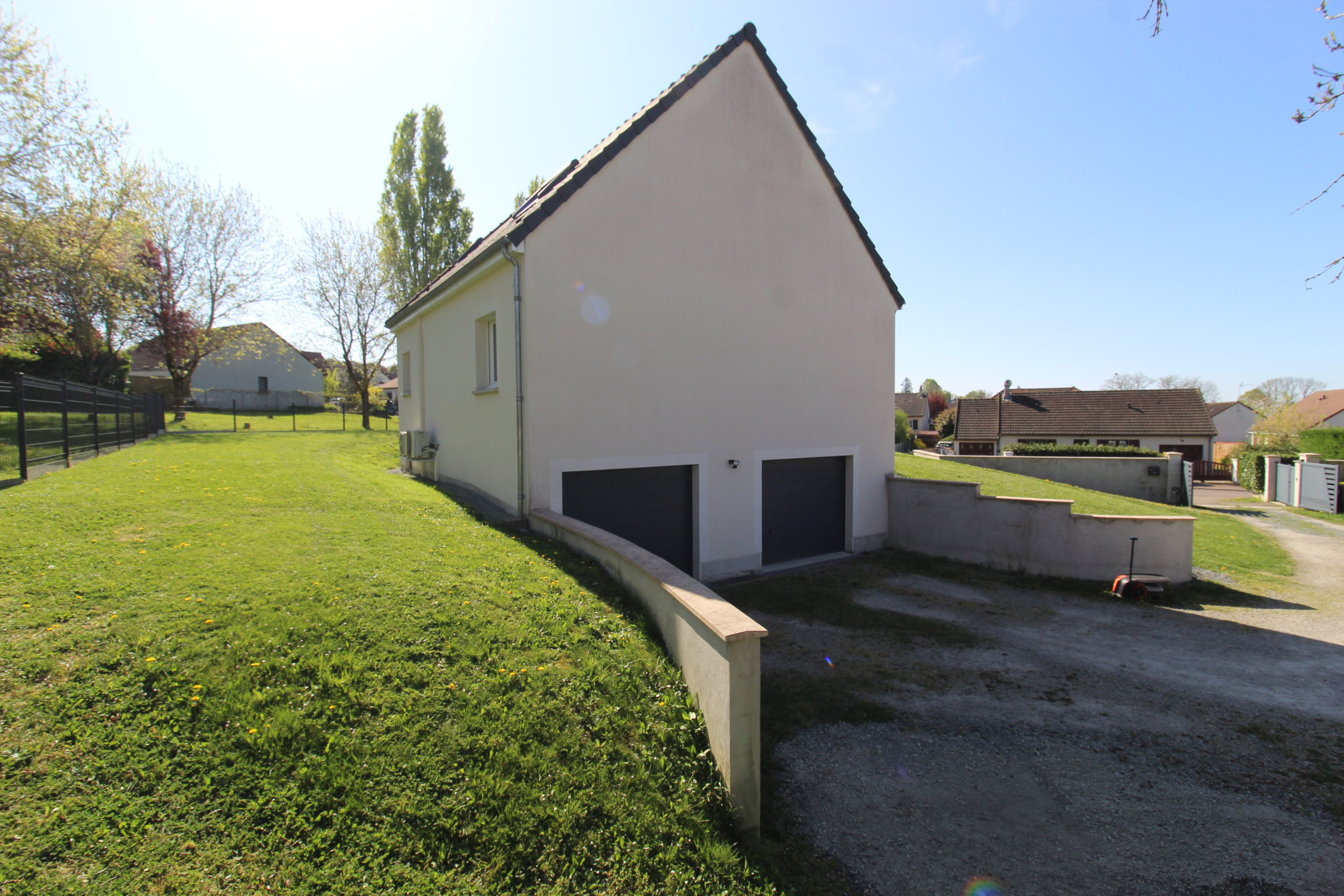 L’extérieur ne manque pas de séduire : un terrain de 1 043 m² entièrement clôturé, sécurisé par un portail motorisé, offre un espace idéal pour profiter des beaux jours dans un cadre paisible.