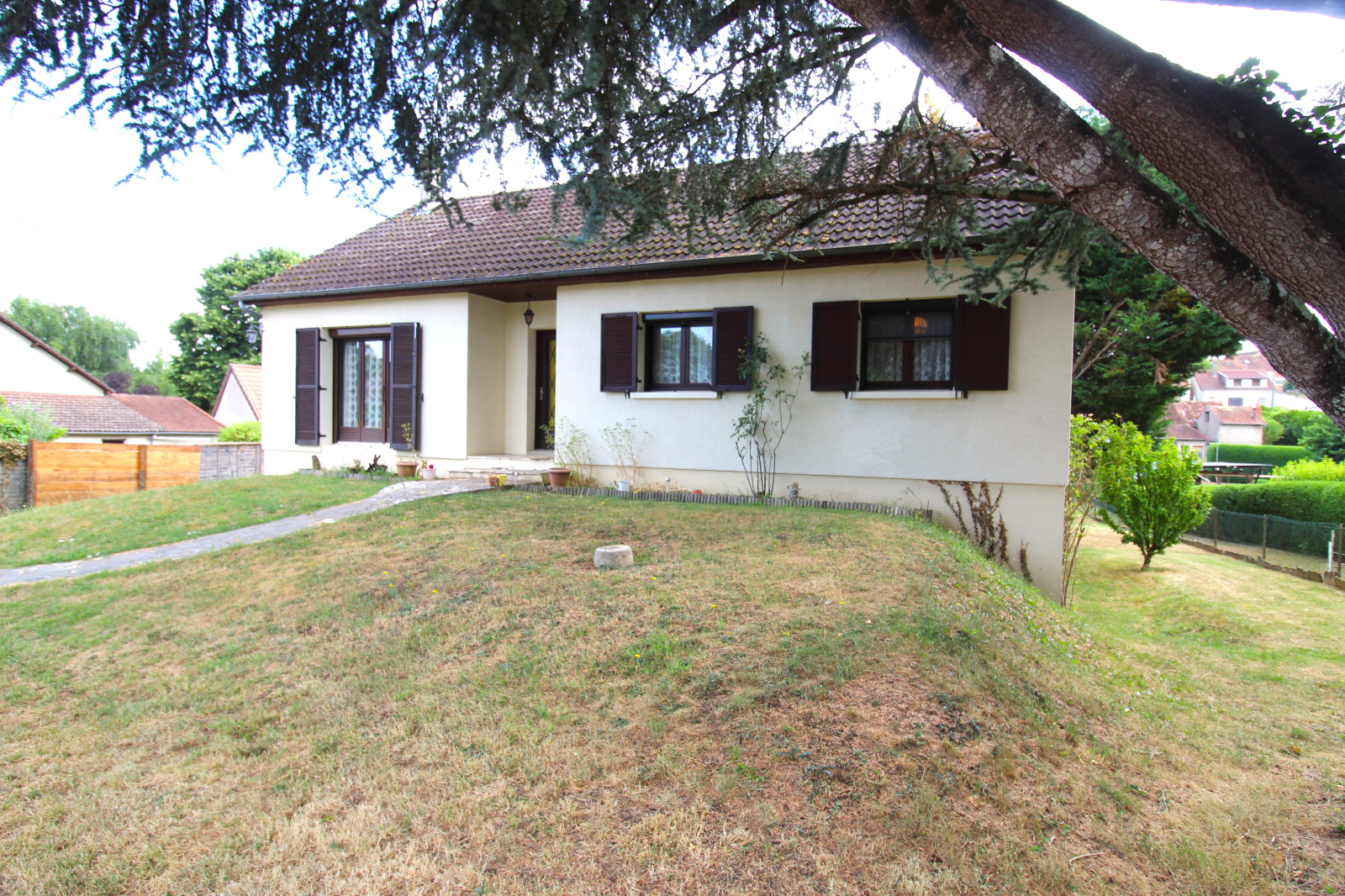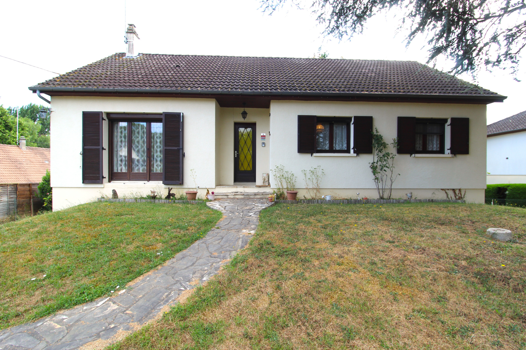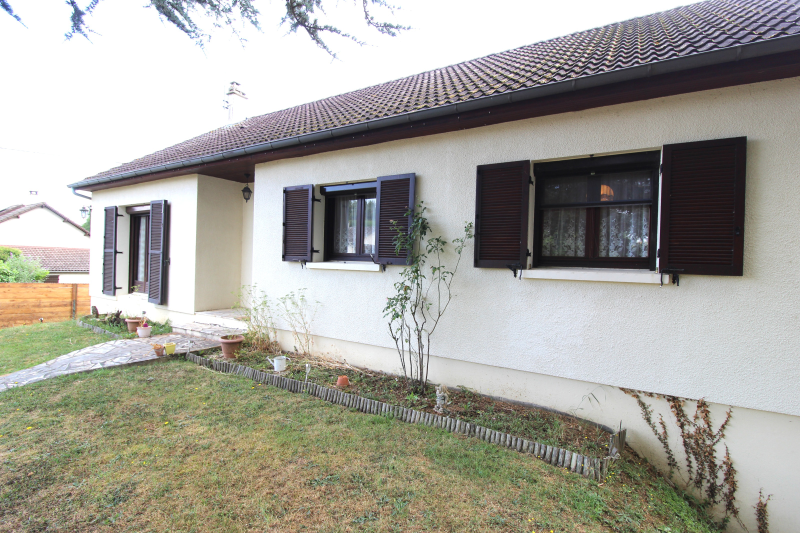 Le sous-sol total permet de stationner deux véhicules et offre la possibilité d’aménager deux chambres supplémentaires ou tout autre espace selon vos besoins. La maison est raccordée au tout-à -l’égout, équipée de menuiseries en double vitrage avec volets roulants, et bénéficie d’un mode de chauffage mixte bois et électrique.
