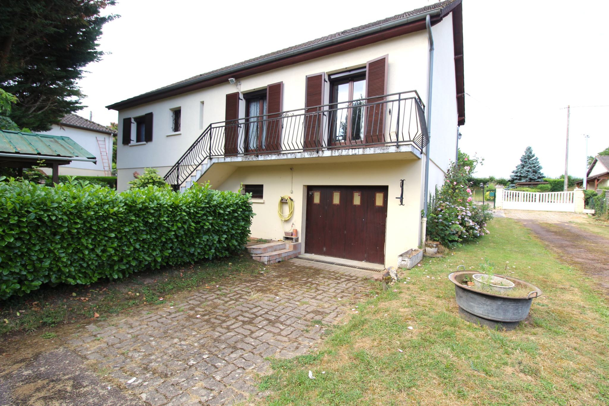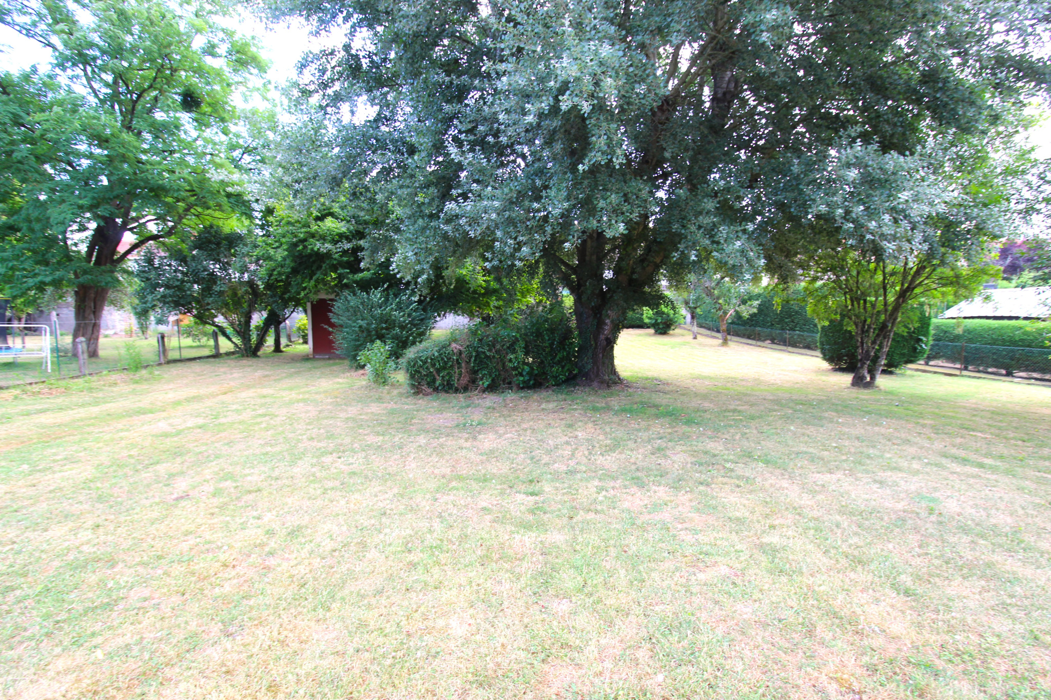 L’ensemble est implanté sur un terrain arboré, entièrement clos, d’environ 1900 m², agrémenté d’une dépendance avec garage.