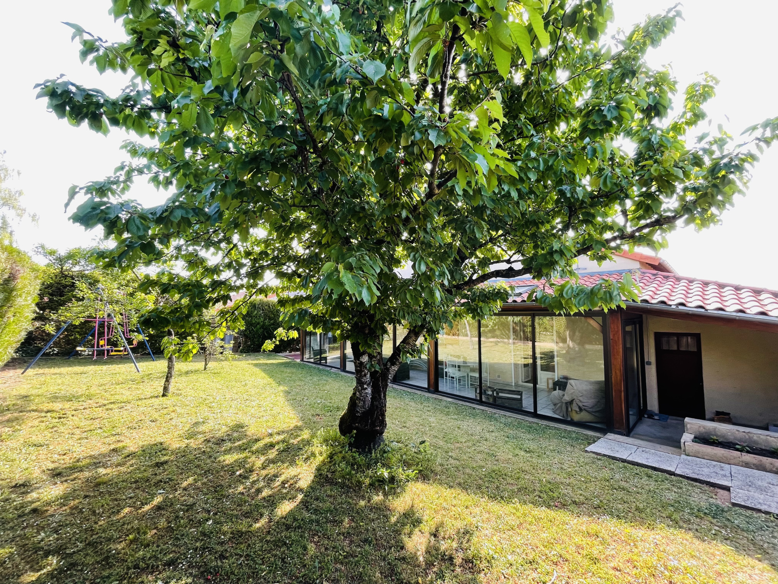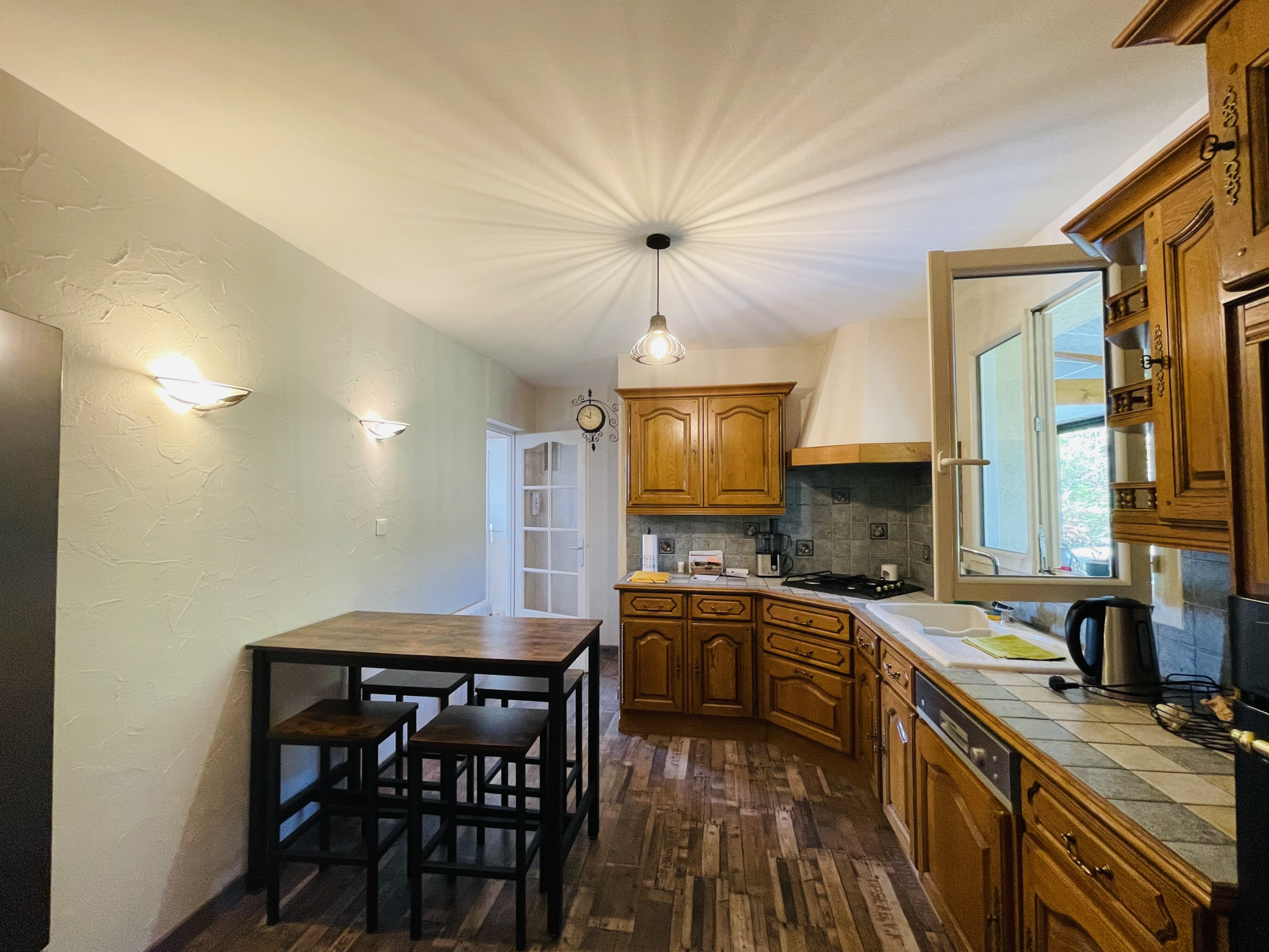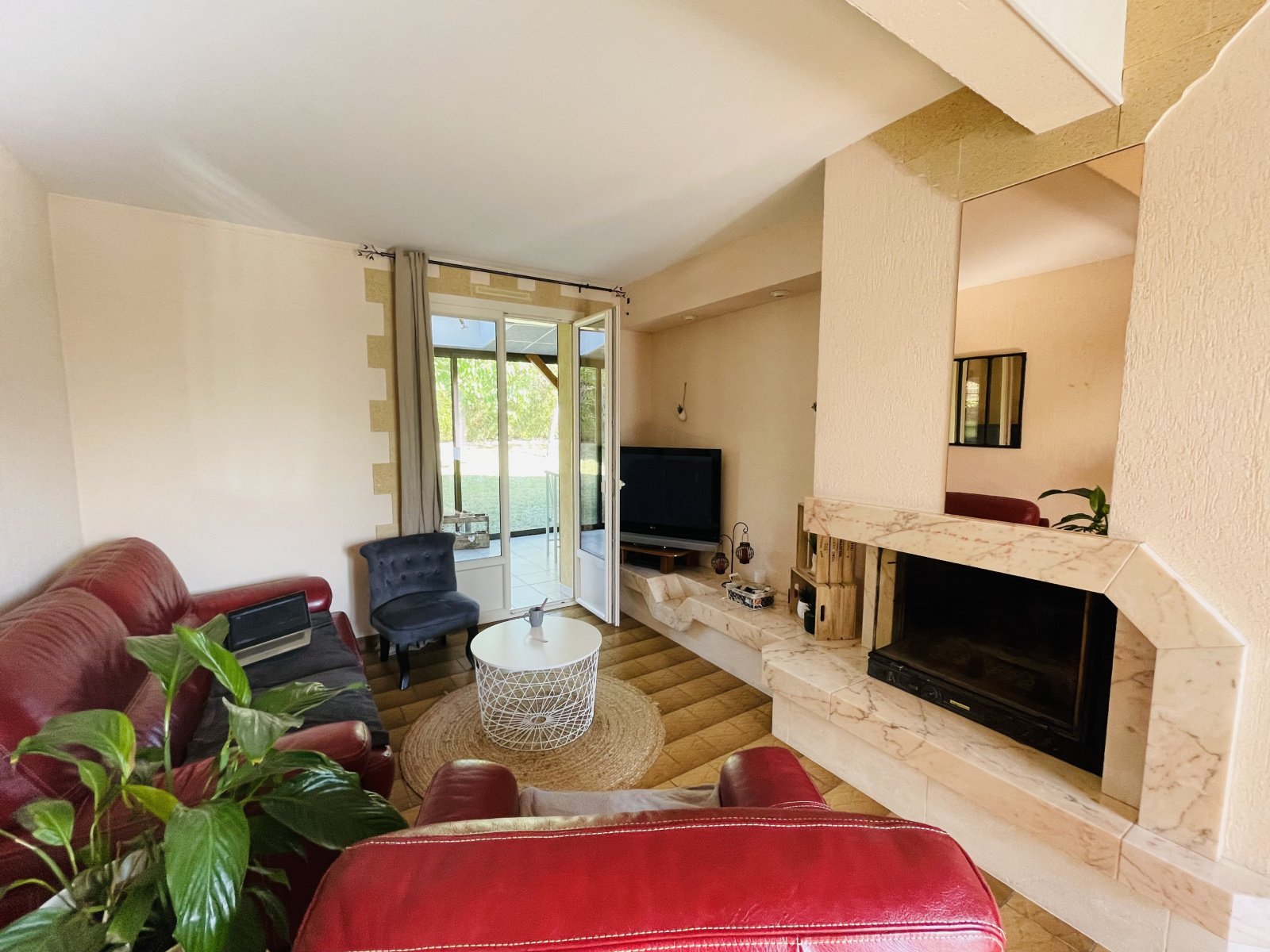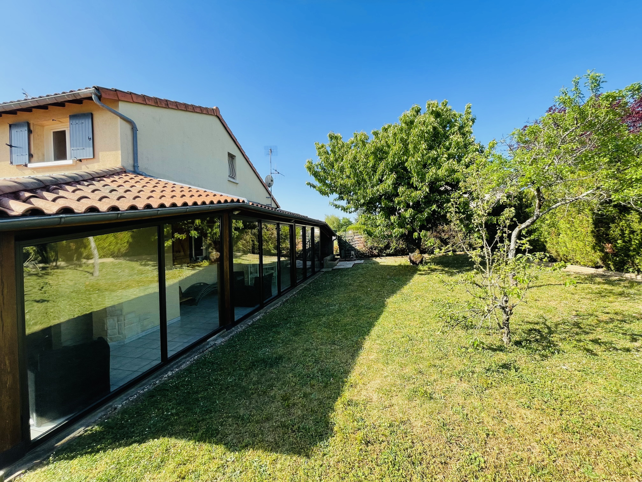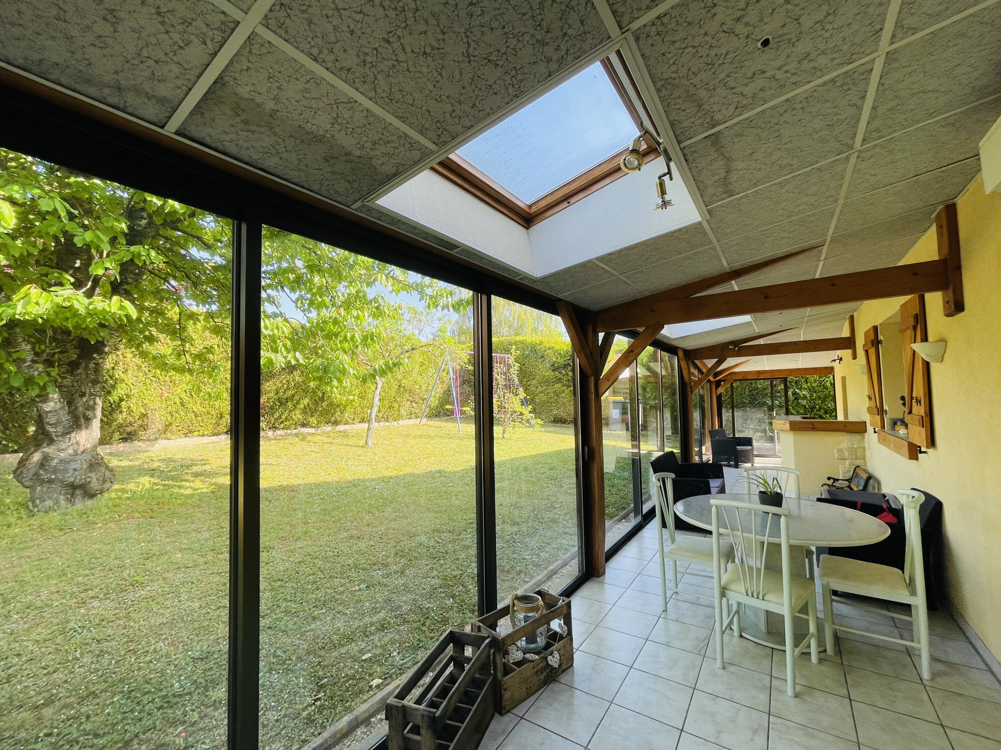 La veranda de 30 M2 environ supplémentaire avec bar et vue sur le jardin, et parfaitement integrée à la maison , idéal pour des moments conviviaux et de detente.