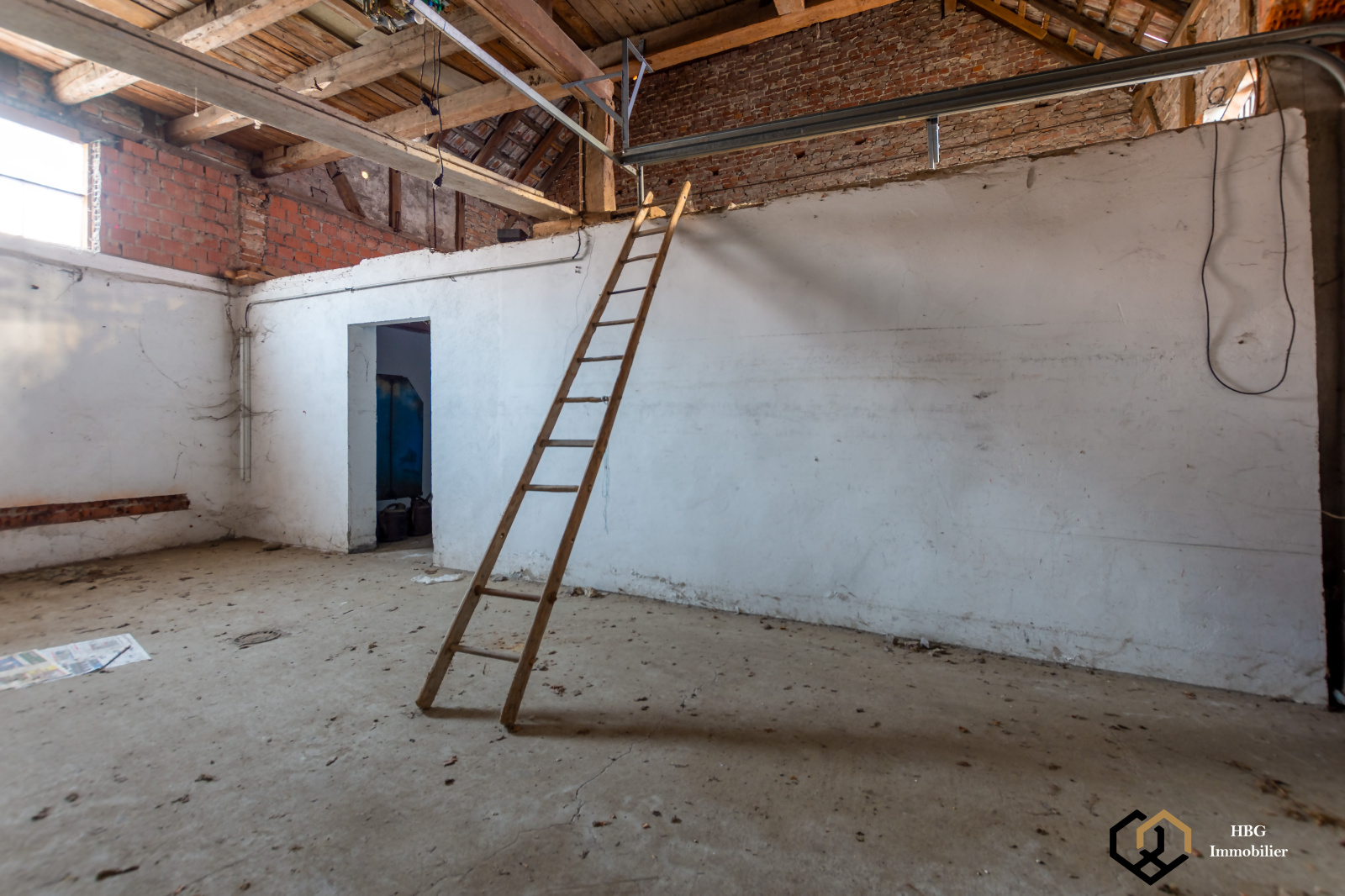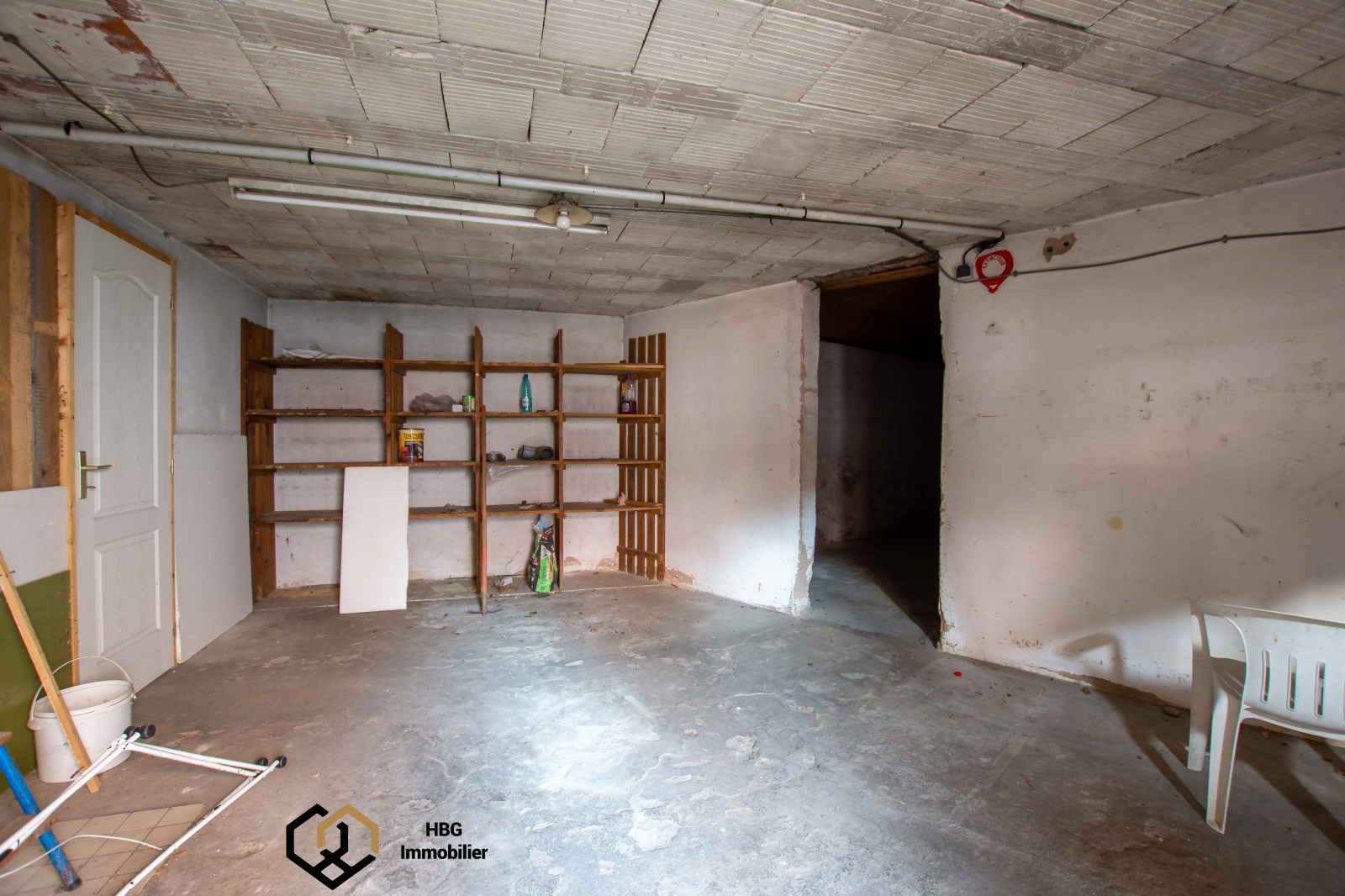 Le rez de chaussé est à réabiliter, grand volume de 50 m2 pour une pièce à vivre ou commerce.