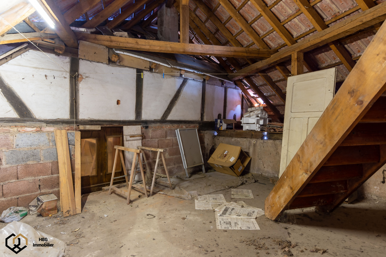 Le 1er étage est composé d'un appartement 5 pièces plus combles aménageables.Â