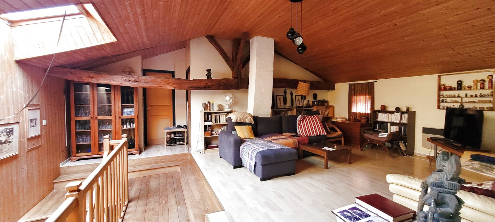 Elle se compose :- En rez-de-chaussée : une cuisine, un salon salle à manger, un accès a la grange - à l’étage, en pallier une vaste pièce servant de salon dessert 2 grandes chambres, et une future salle d’eau ;