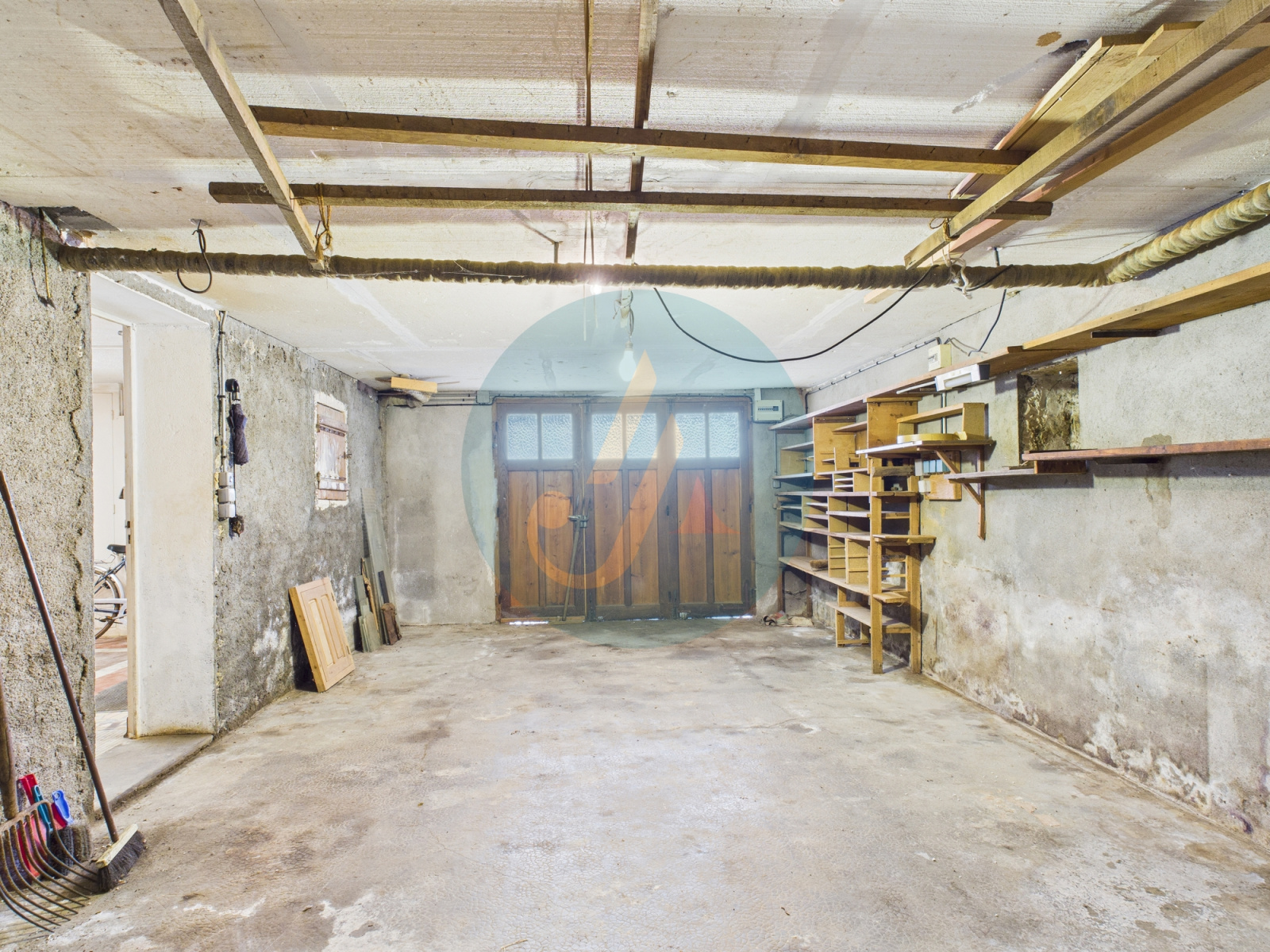 - Un sous-sol de 63m2 avec garage, atelier, cave et cuisine d’été.
