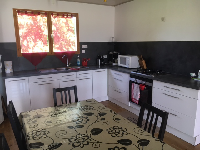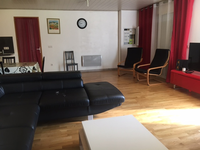 D'un Salon-Séjour en L de 38m2 env avec baie vitrée, Une Cuisine Aménagée et équipée avec le coin Repas et