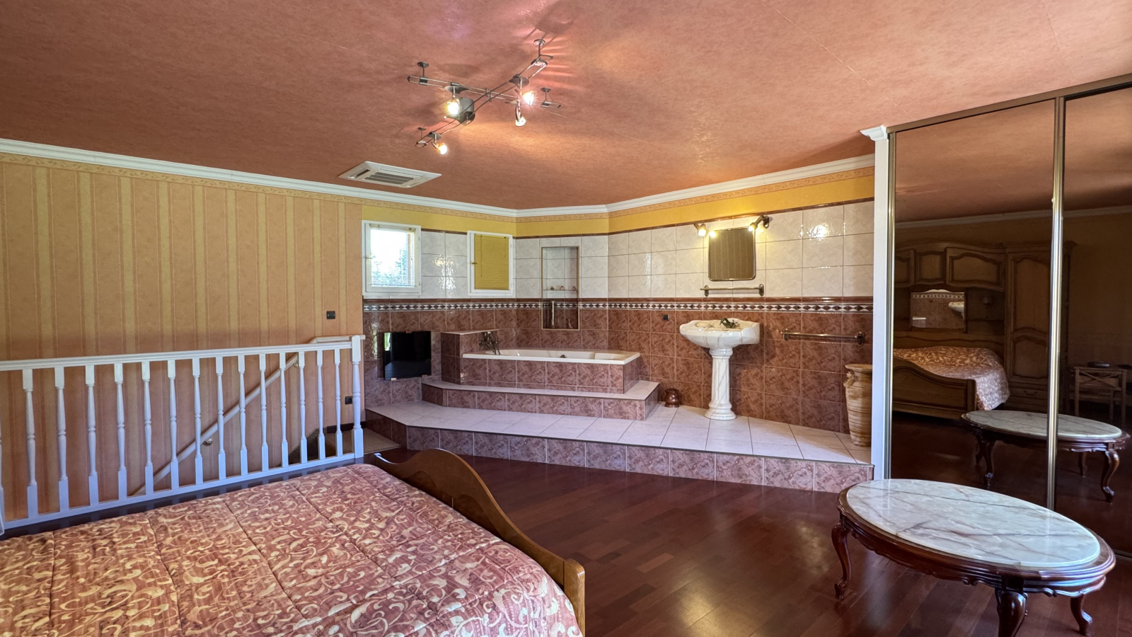 A l 'étage, une grande mezzanine surplombe le salon-séjour et donne accès à une grande terrasse,offrant un espace supplémentaire idéal pour coin détente,bureau ou salle de jeux.