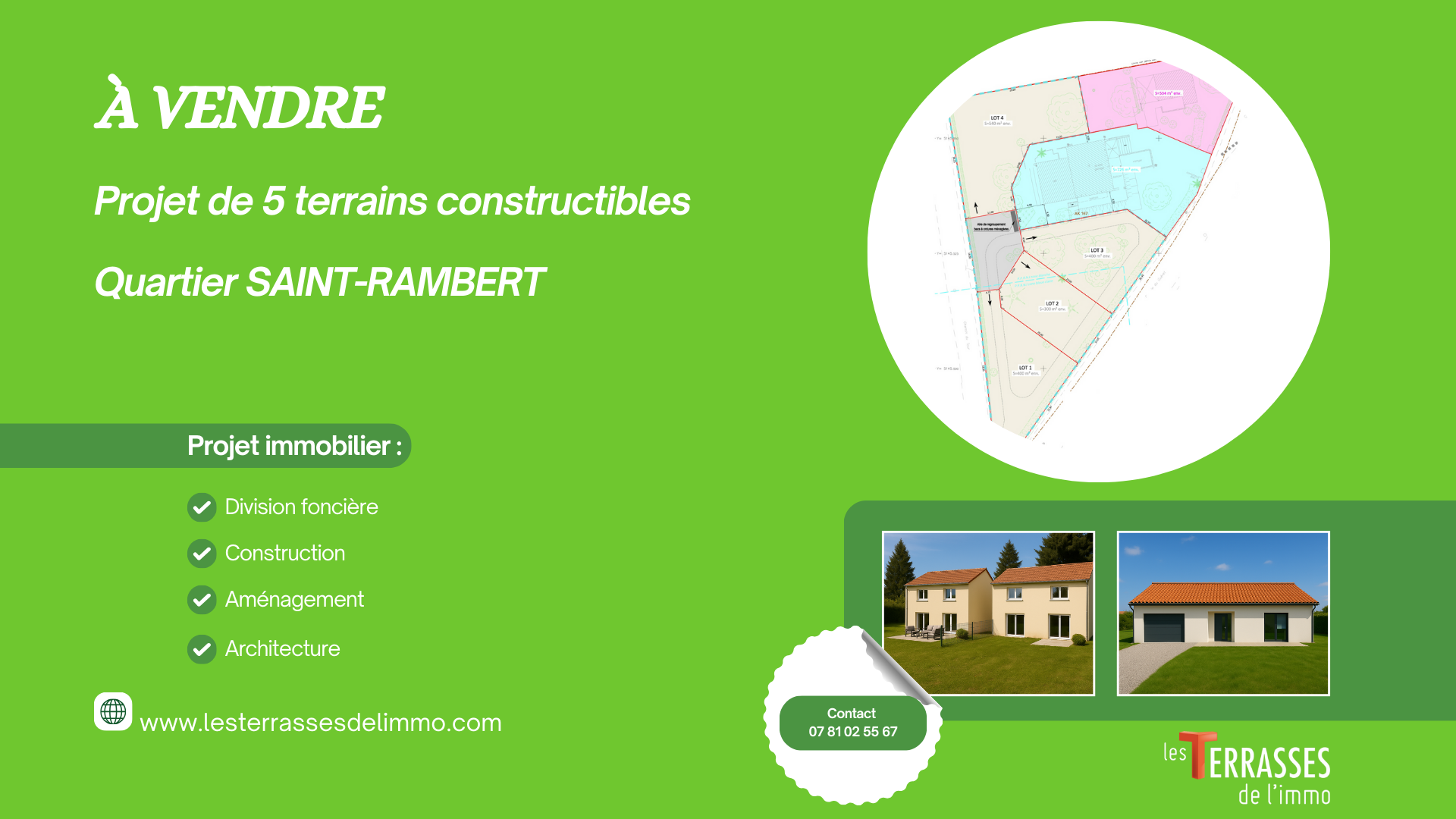 Les Terrasses vous présente un projet de construction à Saint-Rambert . 5 Terrains constructibles de 300 m² à 540 m² à proximité des écoles, commerces et dans un quartier résidentiel ! Soyez parmi les premiers à réserver votre terrain ! Contactez-nous dès maintenant au 07 81 02 55 67. Terrain viabilisé, coef de construction 0,50%. Les Terrasses de l’Immo, votre agence de confiance à Saint-Just Saint Rambert.