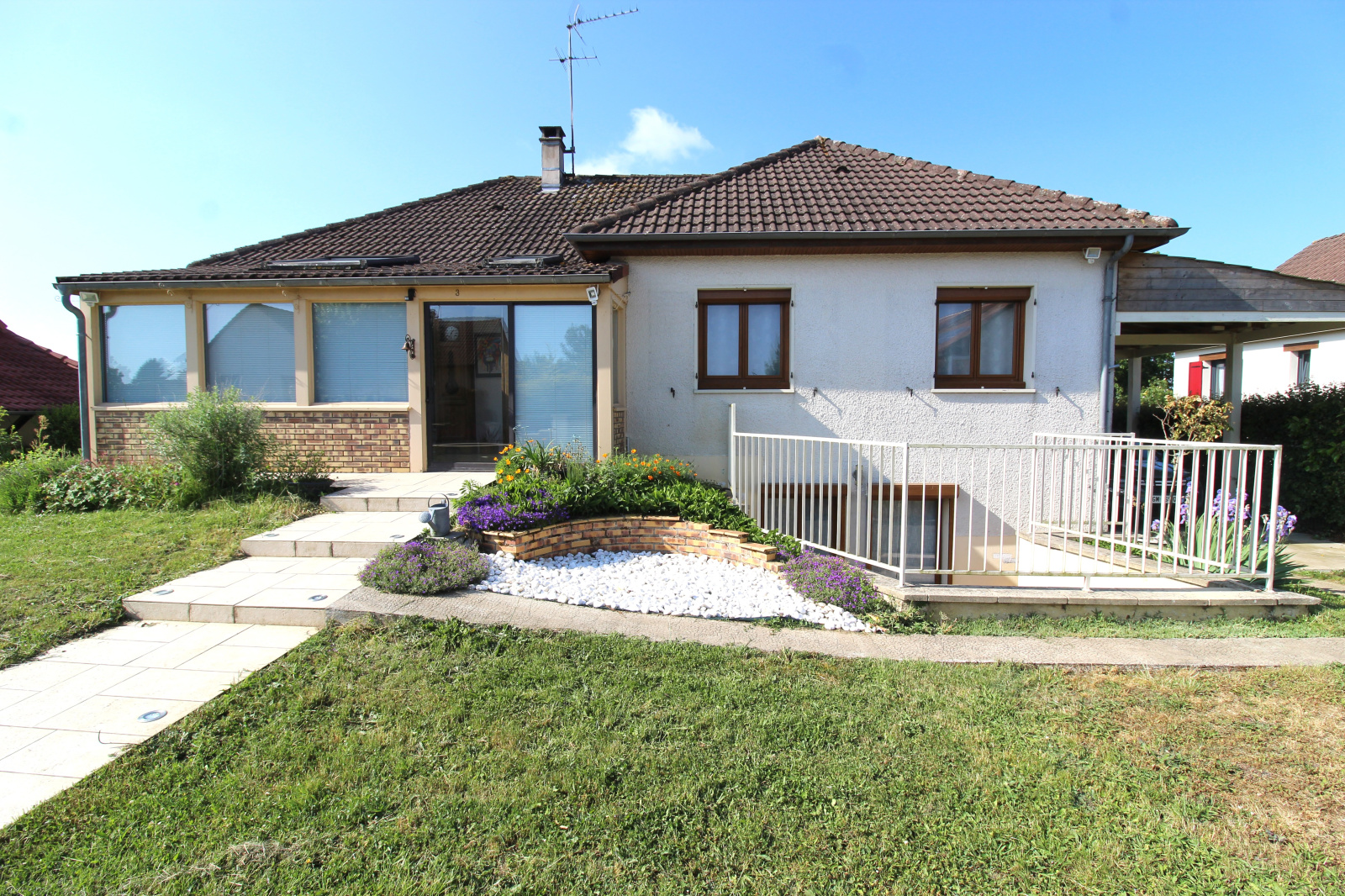 Édifiée sur un sous-sol semi enterré, elle s’ouvre sur une agréable véranda. Le rez-de-chaussée propose un salon-séjour lumineux avec un accès direct à la terrasse à l’arrière de la maison, une cuisine ouverte et aménagée, trois chambres, une salle d’eau et un WC indépendant.