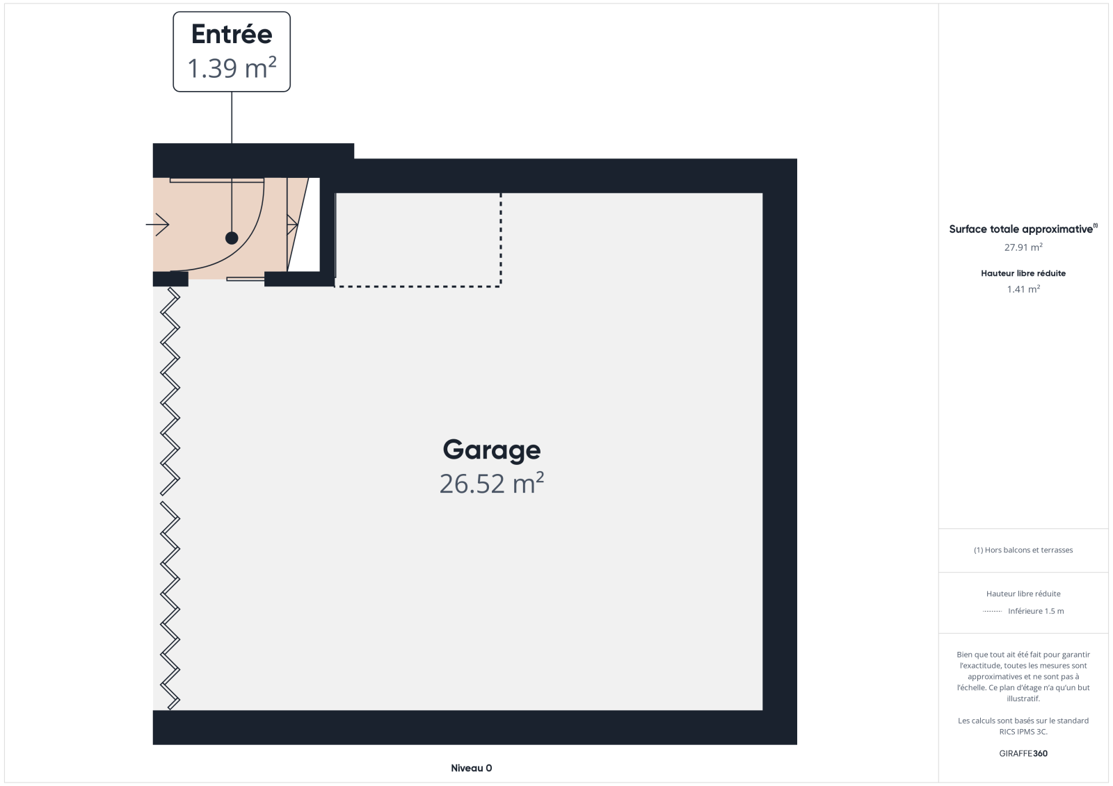 -      Garage avec large porte (26,5m2) pouvant être transformé en habitable.