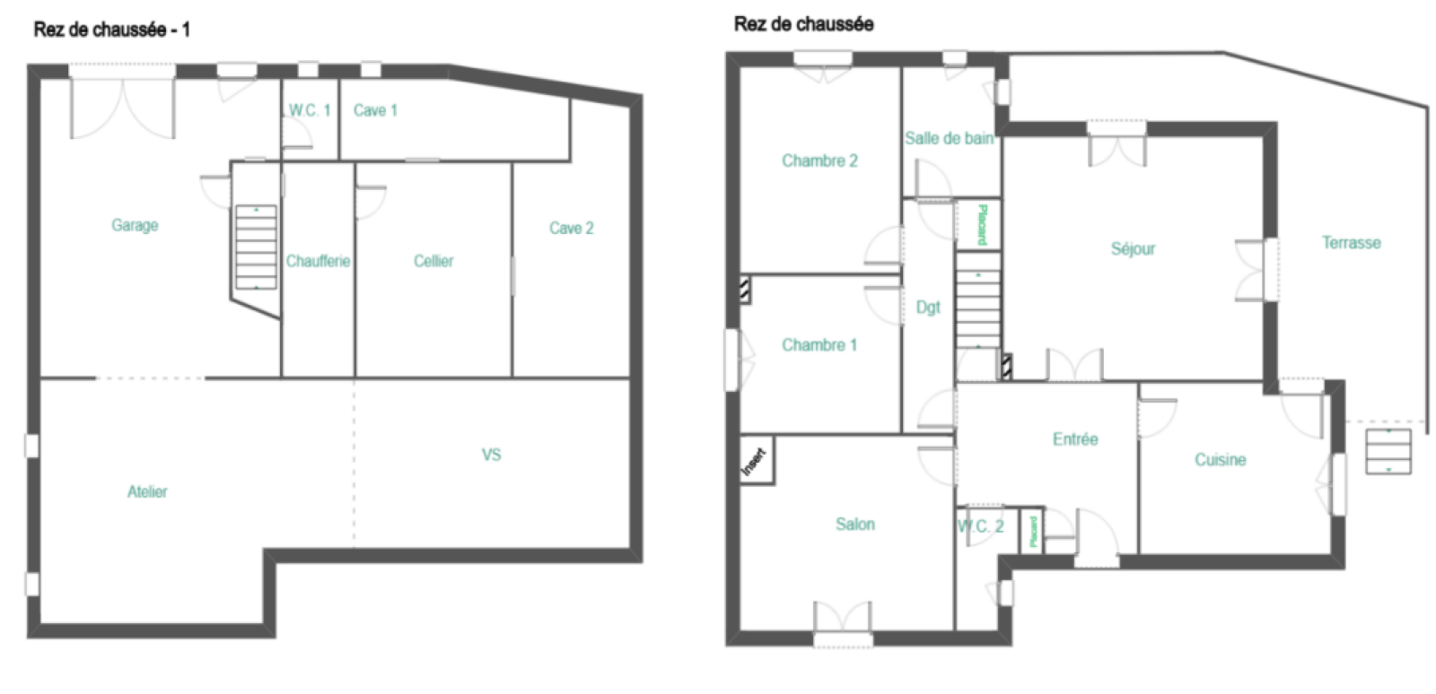 En sous-sous vous disposerez d'un grand garage de 60 m2, un WC, et 30 m2 de chaufferie et caves.