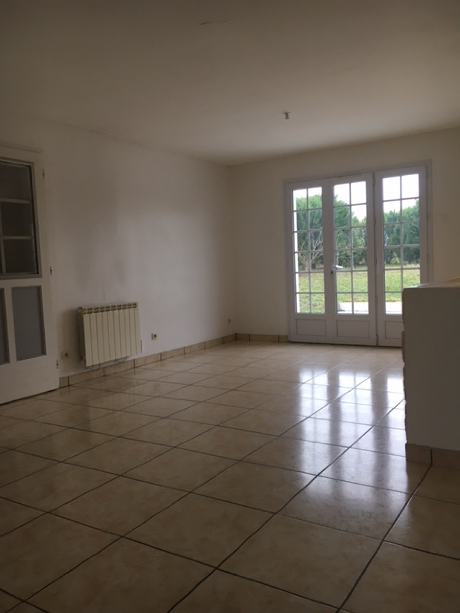 Un Salon-Séjour en L très Lumineux avec ces Grandes Portes fenêtres, d'une Cuisine équipée et Aménagée ouverte sur
