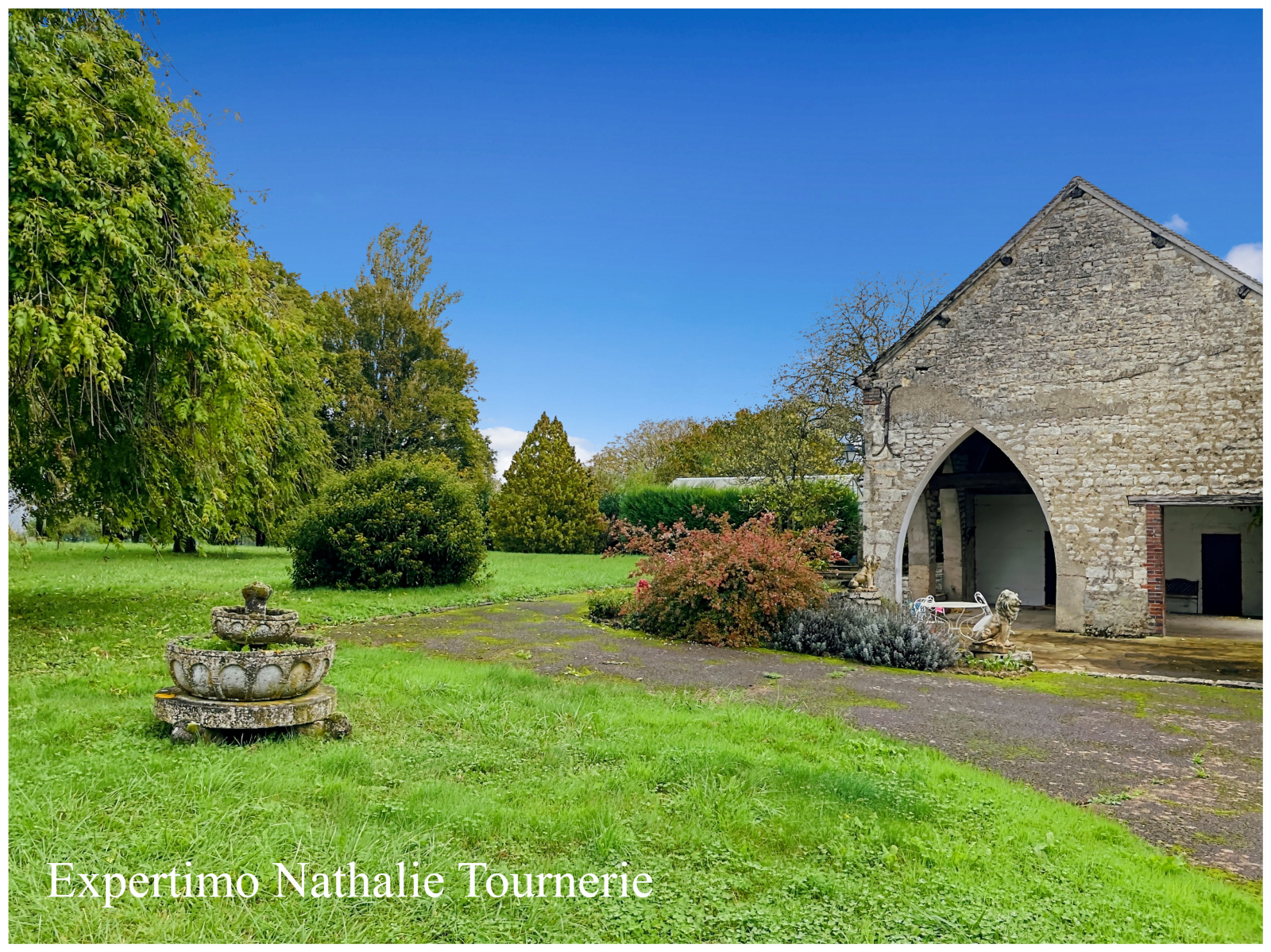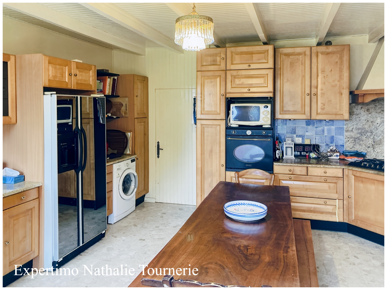 À l’extérieur, la propriété dispose d’un garage double avec ouverture motorisée (37 m²), d’un bûcher, d’un séchoir, ainsi que d’une charmante maisonnette au fond du parc, idéale pour être transformée en gîte, maison d’amis, atelier d’artiste ou location saisonnière.