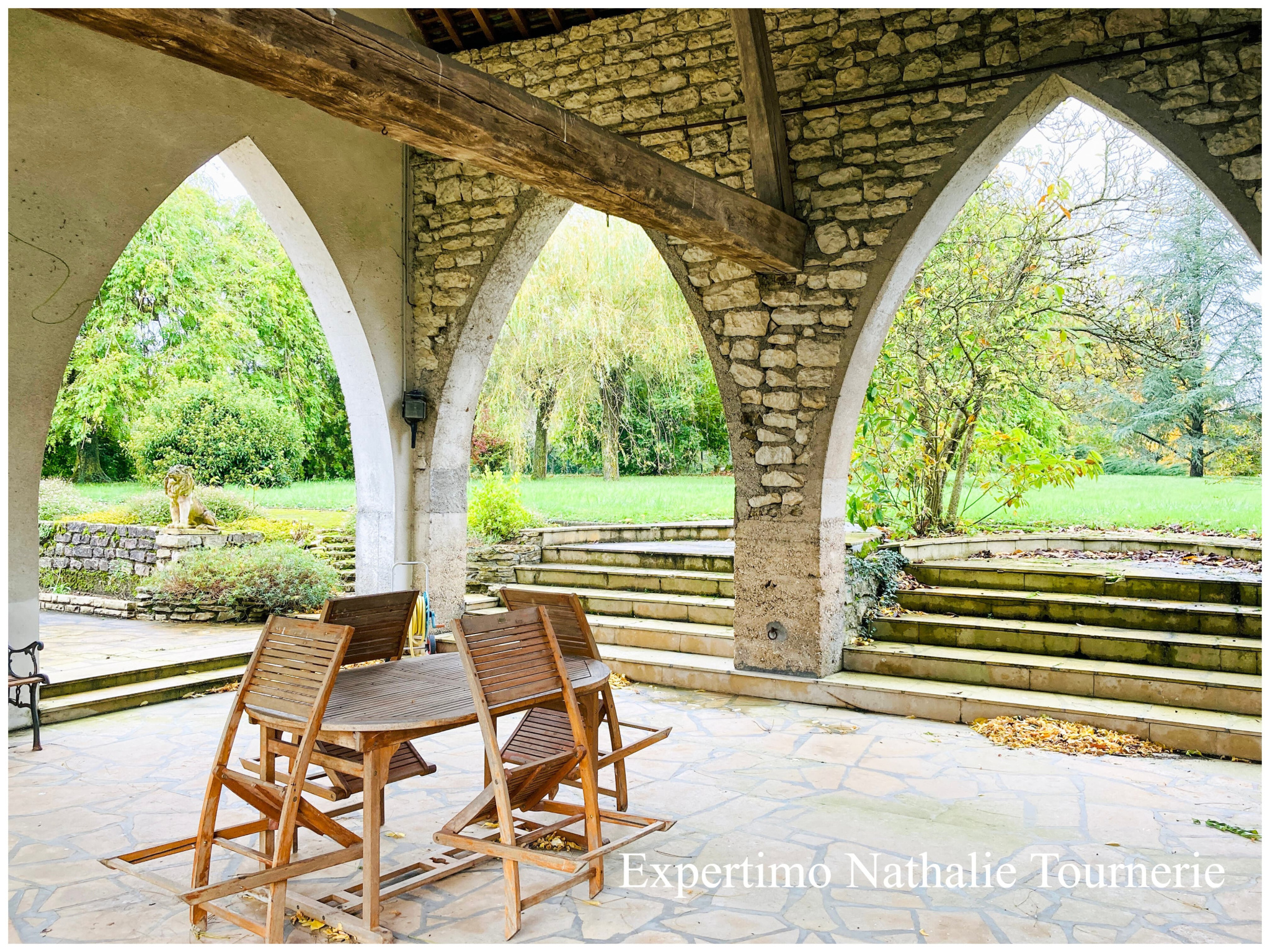 Au rez-de-chaussée, une vaste entrée donne le ton. Elle s’ouvre sur un salon de près de 60 m², chaleureux et accueillant, idéal pour de grandes réceptions ou des soirées au coin du feu. Vous y trouverez également une grande chambre (24 m²), une salle de bain élégante, une cuisine dinatoire entièrement équipée (19 m²), un espace buanderie avec point d’eau et WC, ainsi qu’un second salon (30 m²) avec vue directe sur le parc.