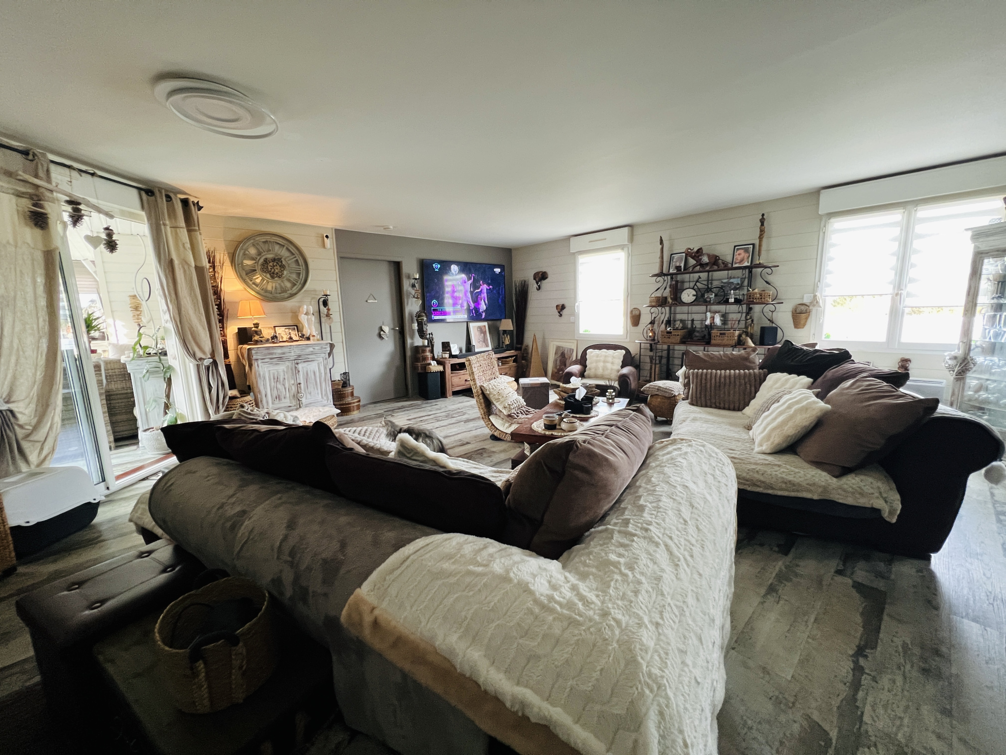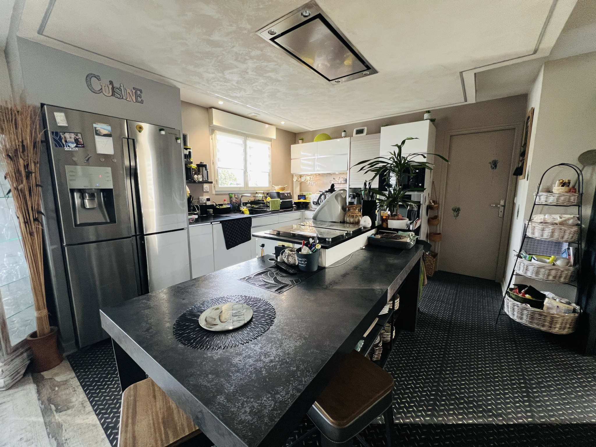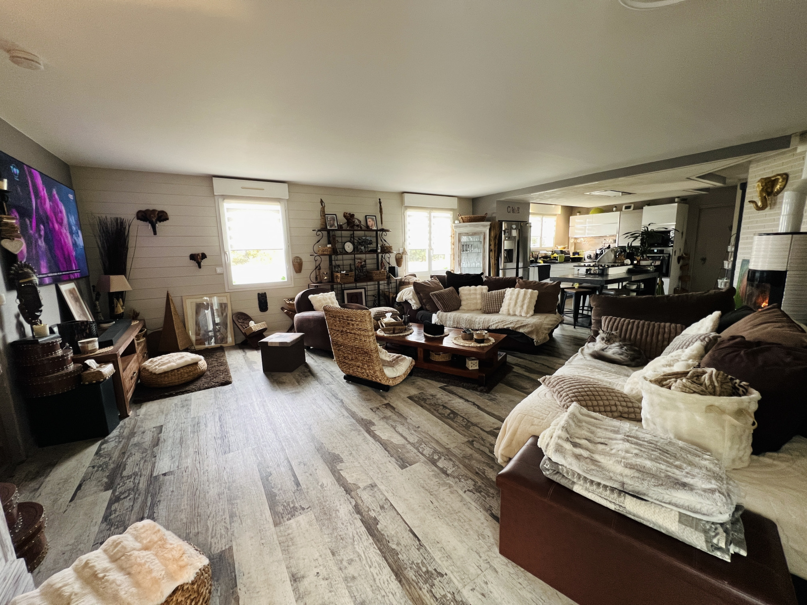De plain-pied, elle se compose d’une vaste entrée menant à une lumineuse pièce de vie avec poêle, ainsi qu’une cuisine ouverte aménagée et équipée avec îlot central. Vous apprécierez une salle à manger chaleureuse (pouvant accueillir un autre usage), une suite parentale avec dressing et salle d’eau, deux chambres avec placards, un bureau, une salle de bains, une lingerie, une arrière cuisine et un WC.