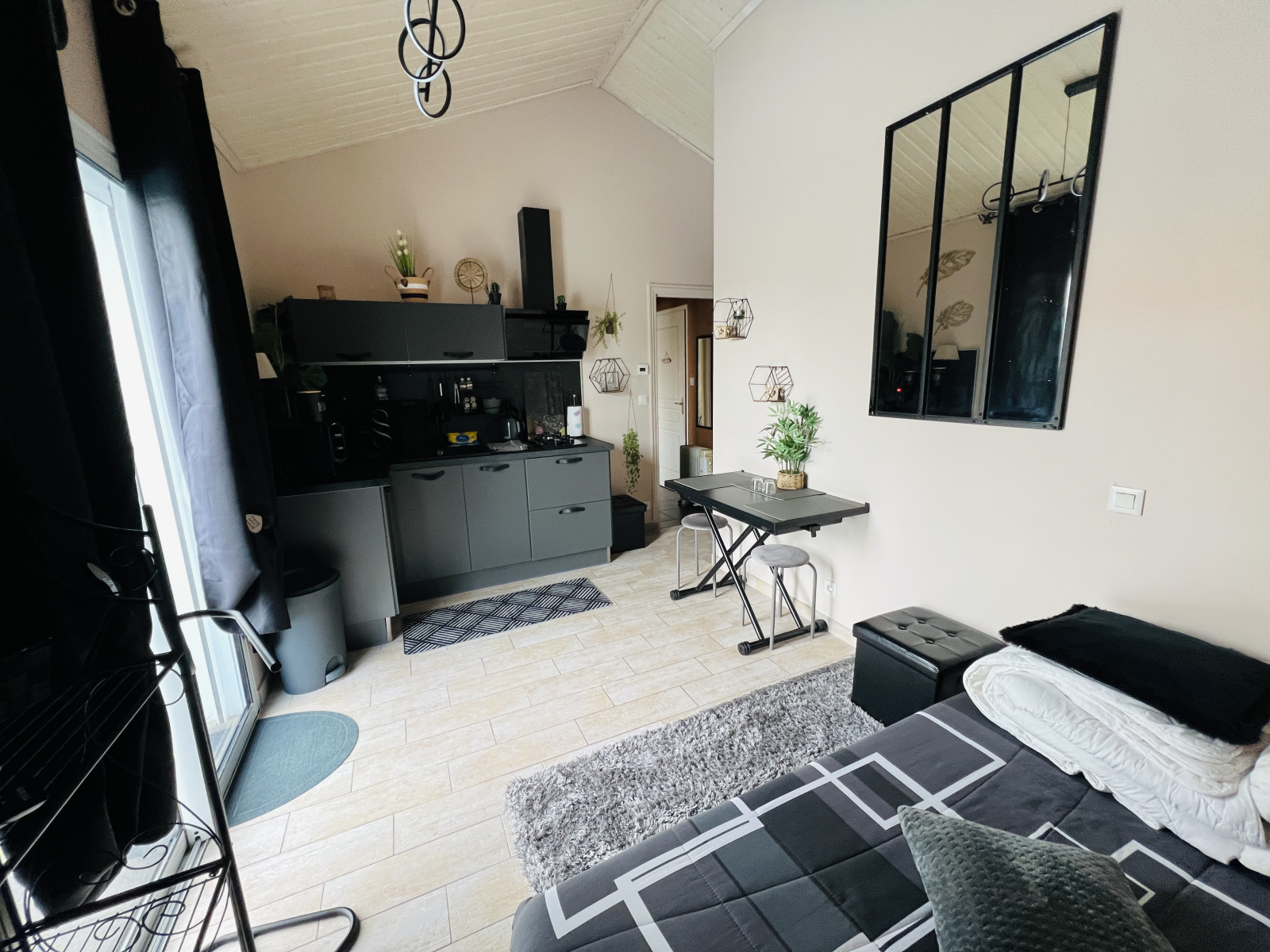 • Chambre d’hôtes n°1 : pièce de vie avec couchage et cuisine aménagée et équipée, une chambre, salle d’eau et WC.