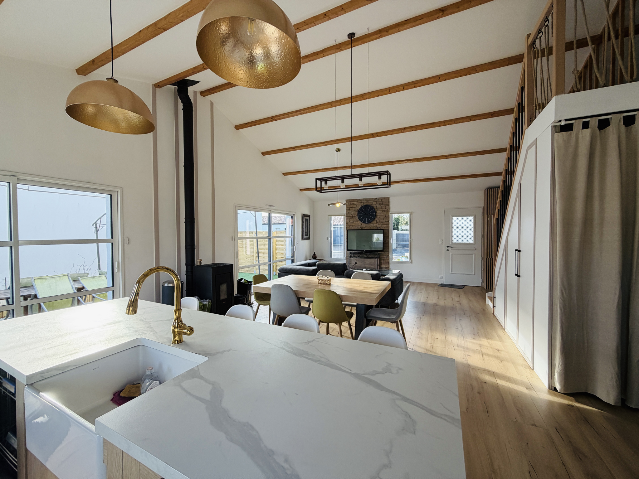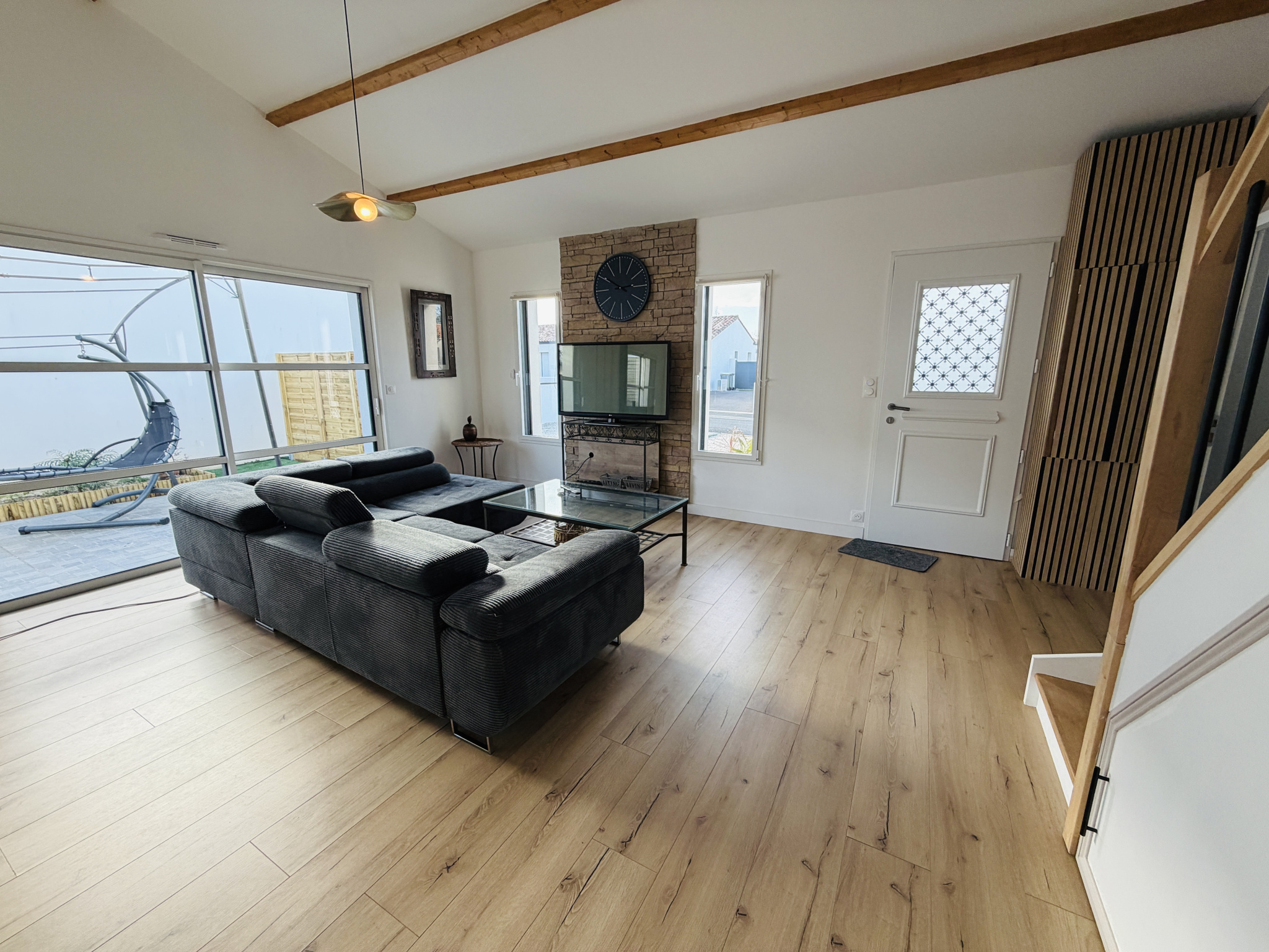 L’Agence MEMIN vous propose en exclusivité cette charmante maison lumineuse située à L’Aiguillon-sur-Vie. Nichée au calme, au cœur d’une impasse, elle se trouve à seulement 700 m des commerces. La maison s’ouvre sur une grande et belle pièce de vie lumineuse avec une vaste cuisine ouverte aménagée et équipée. Elle comprend deux chambres, une salle d’eau avec espace lingerie, un WC indépendant, ainsi qu’une troisième chambre en mezzanine offrant un espace supplémentaire agréable. À l’extérieur, vous profiterez d’un jardin clos avec terrasse et abri de jardin. Économe en énergie et bénéficiant de la garantie décennale, cette maison allie confort, tranquillité et sérénité.