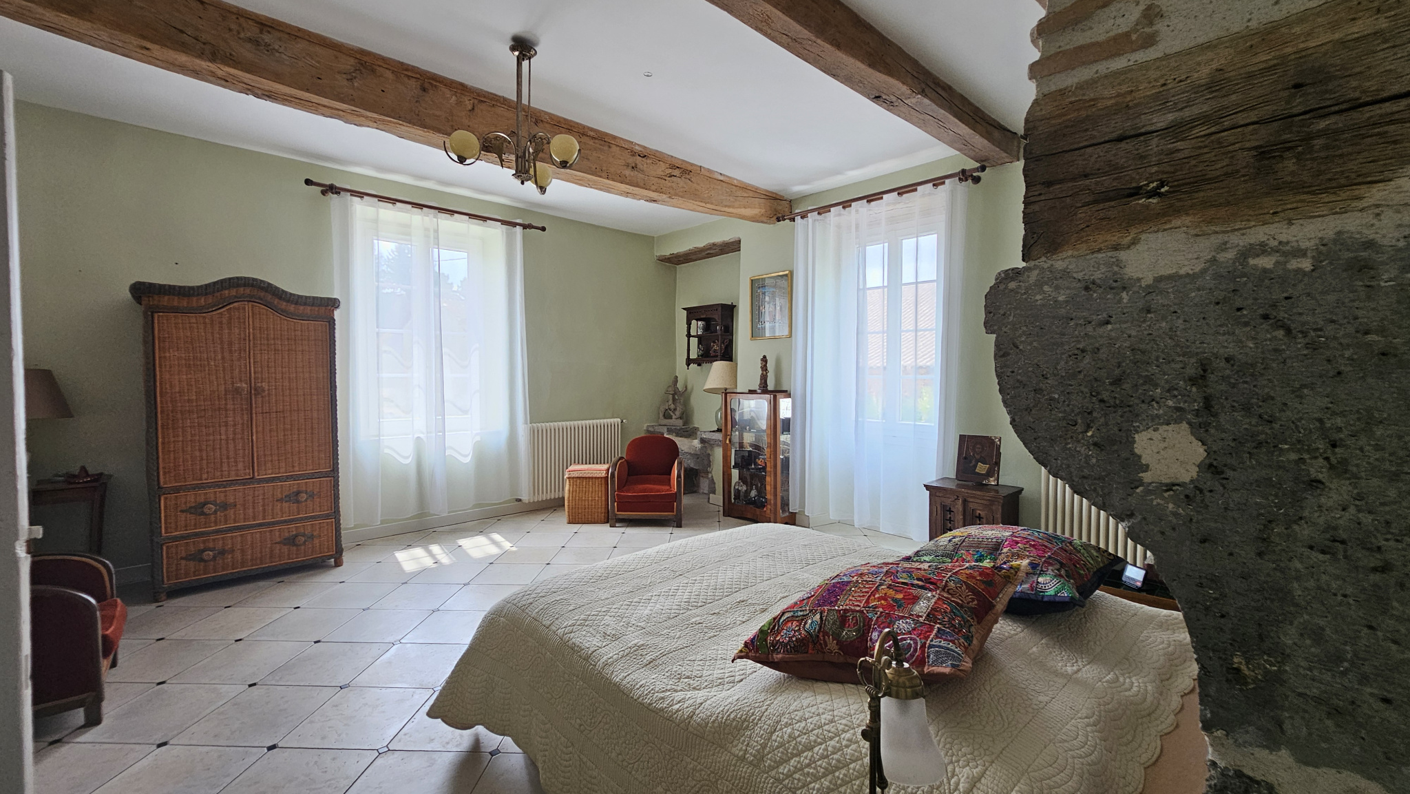 Ses nombreuses chambres (5 ou 6) dont une au rez de chaussée avec sa salle d’eau, ses grandes pièces lumineuses hautes de plafond (entre 28 et 35 m²) rendent la maison particulièrement plaisante et conviviale.