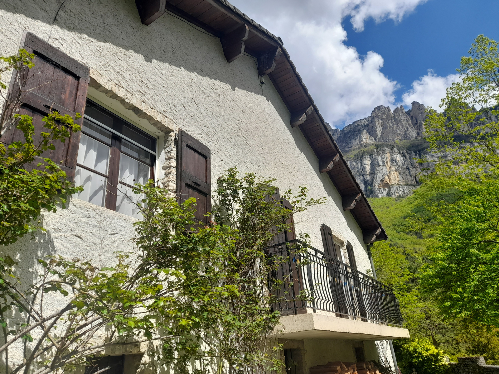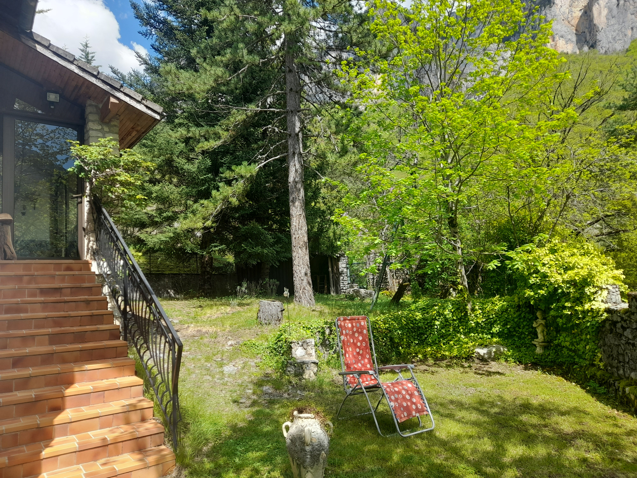 La propriété s’étend sur un superbe terrain arboré de 1465 m², avec une vue panoramique à couper le souffle sur le Cirque d’Archiane, site naturel emblématique des falaises du Vercors.