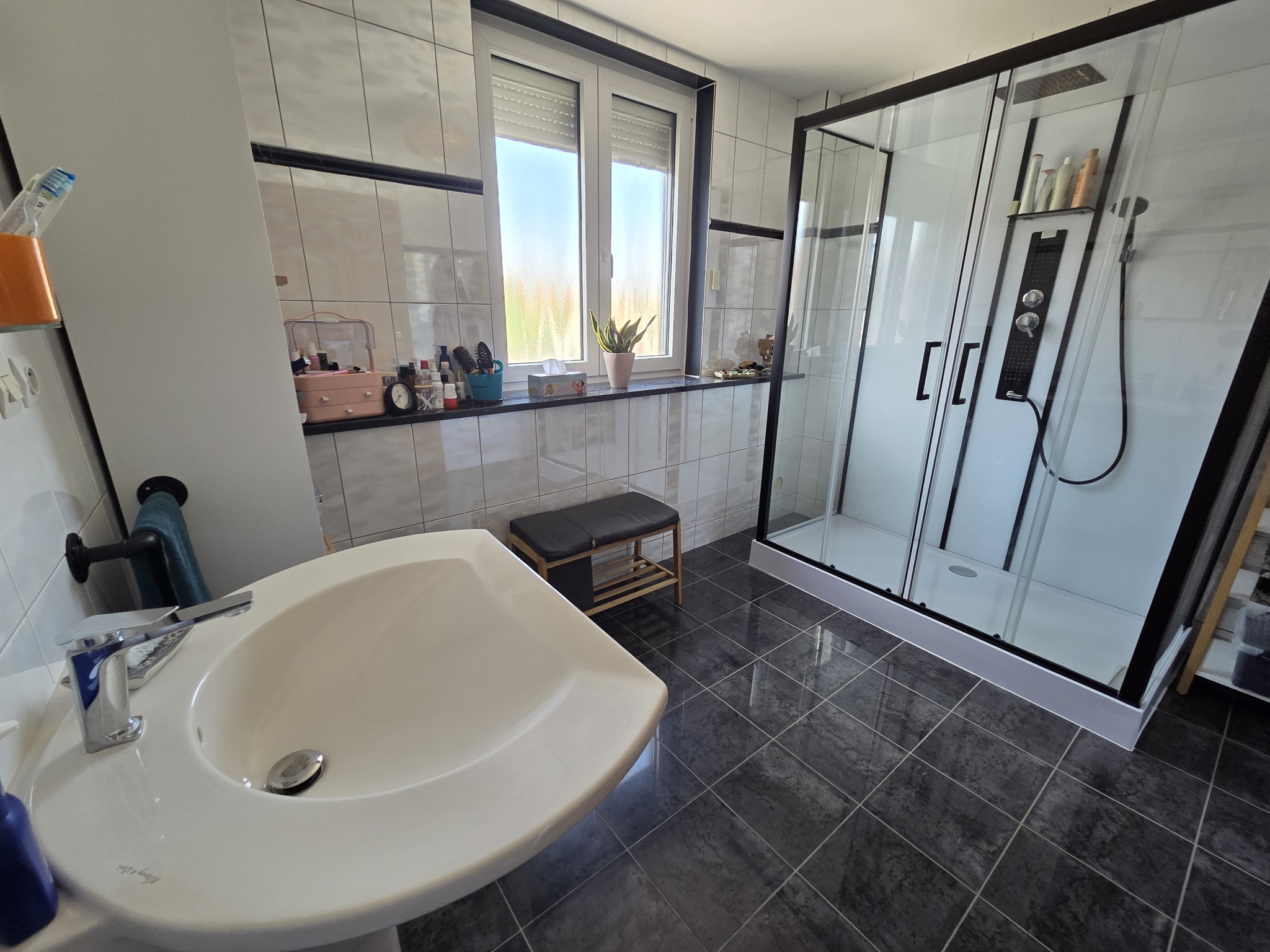 La maison offre 4 chambres confortables, parfaites pour une grande famille ou pour aménager des espaces bureau,