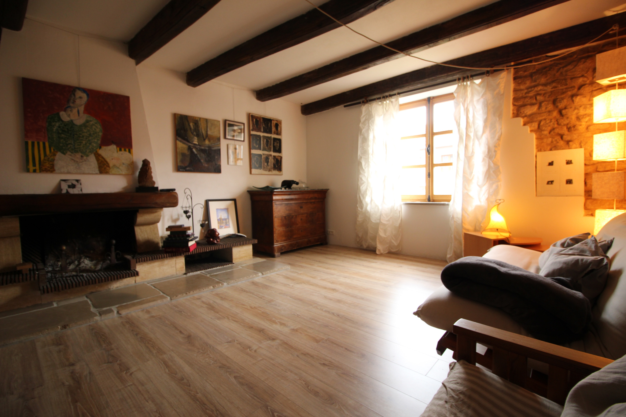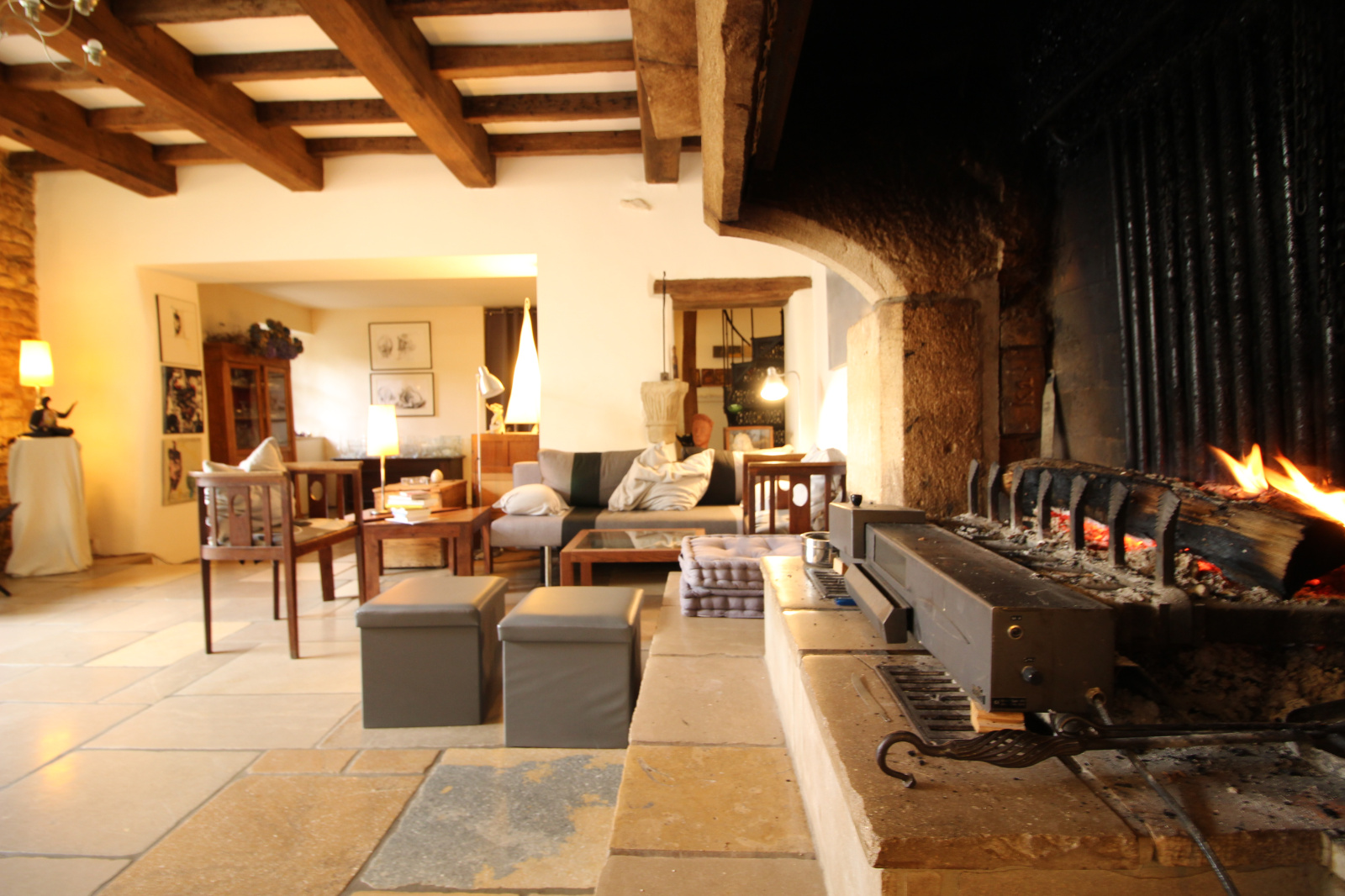 pierre de bourgogne, 1 cheminée, 1 porte-fenêtre donnant sur l'extérieur