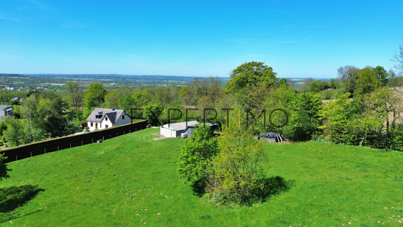 A cela, s'ajoutent des arbres fruitiers et surtout 2 beaux herbages clos avec un hangar de qualité de 80m² et un abris en bois.