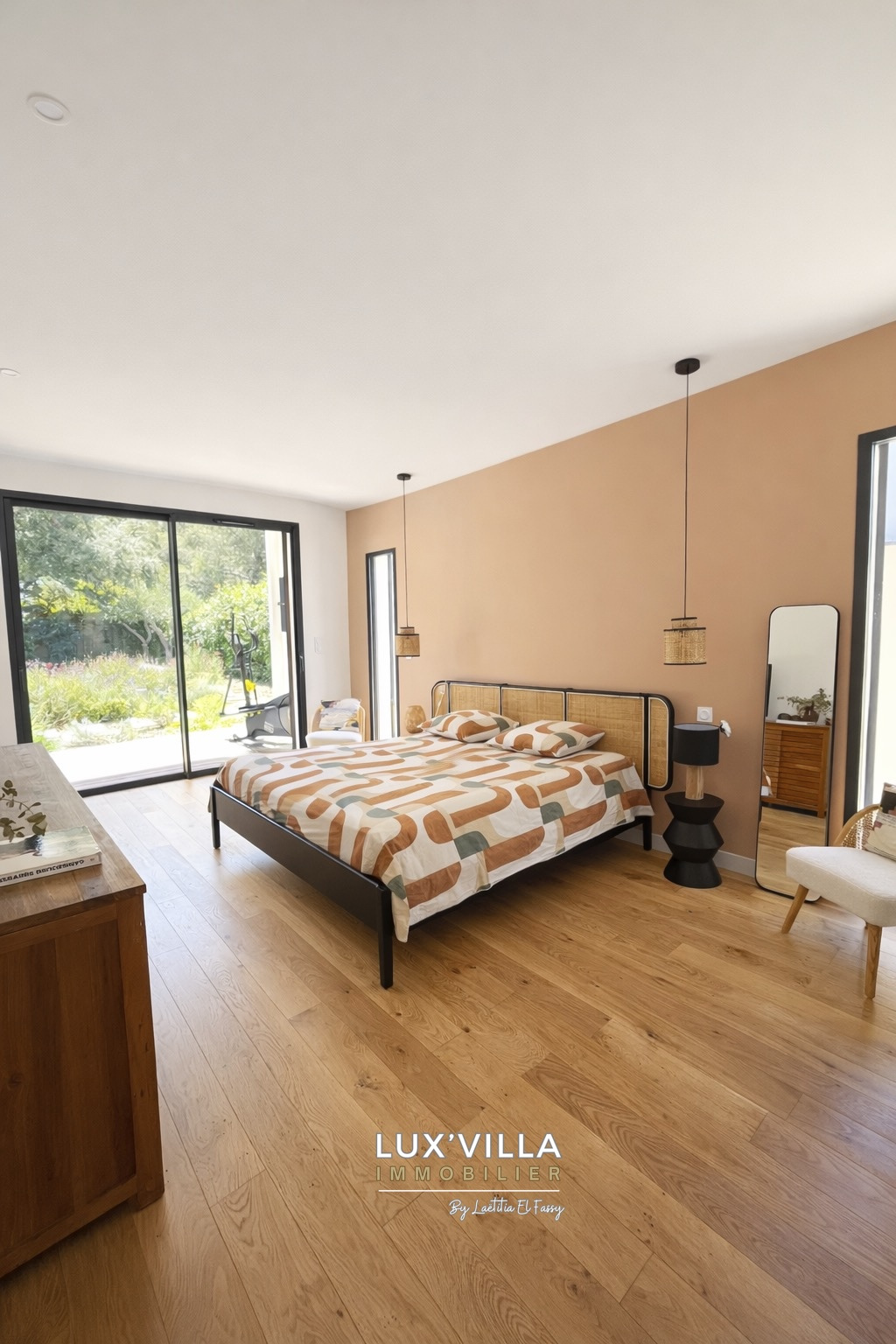 Au rez-de-chaussée, une vaste suite parentale d’environ 41 m² avec salle de bains, dressing et accès direct à une belle terrasse ombragée et au jardin.