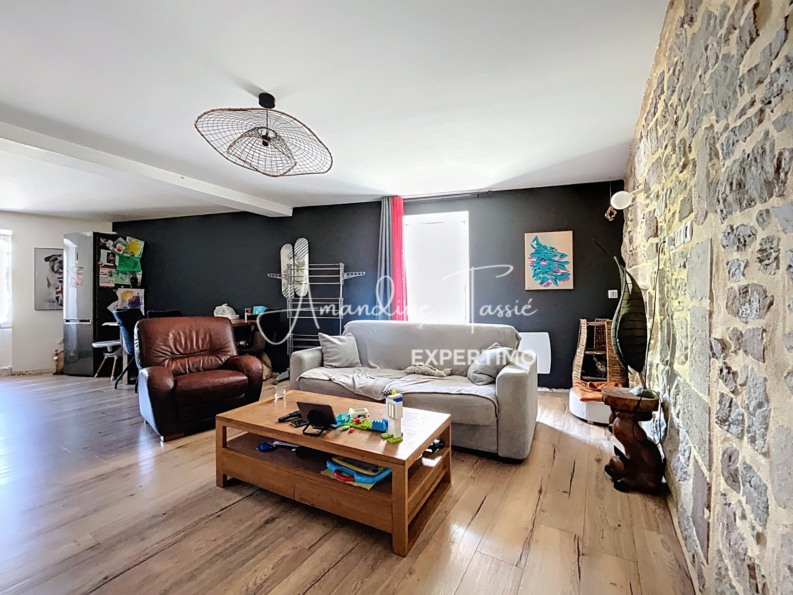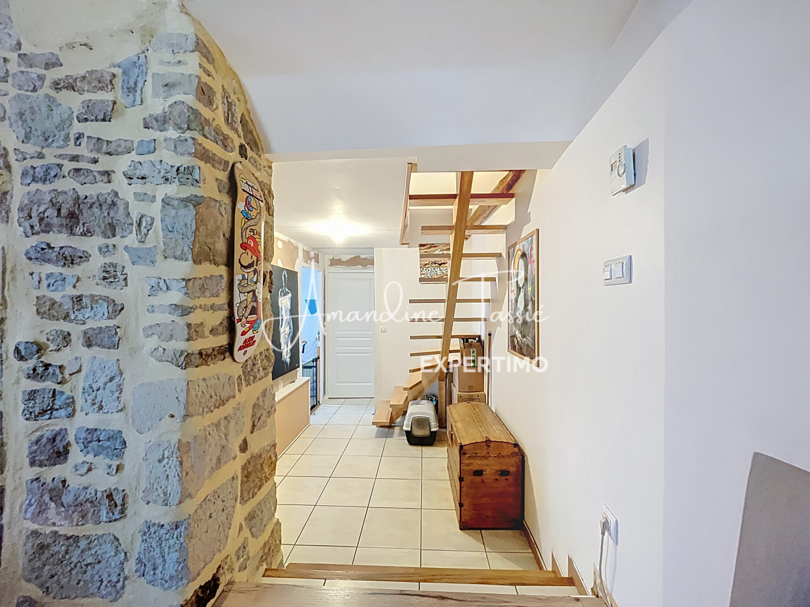 Ce bien atypique et chaleureux situé en premier étage se compose d’une belle pièce de vie de 31,7m² avec cuisine ouverte, mur en pierre apparente et insert bois, d'un bureau de 7m² idéal pour travailler depuis la maison, d'une pièce de 8m2 pouvant servir de chambre d’enfant et d'un WC avec coin buanderie. À l’étage, vous profiterez d’une  chambre mansardée de 17m2 au sol avec coin dressing et d’une salle de bain de plus de 7m2.