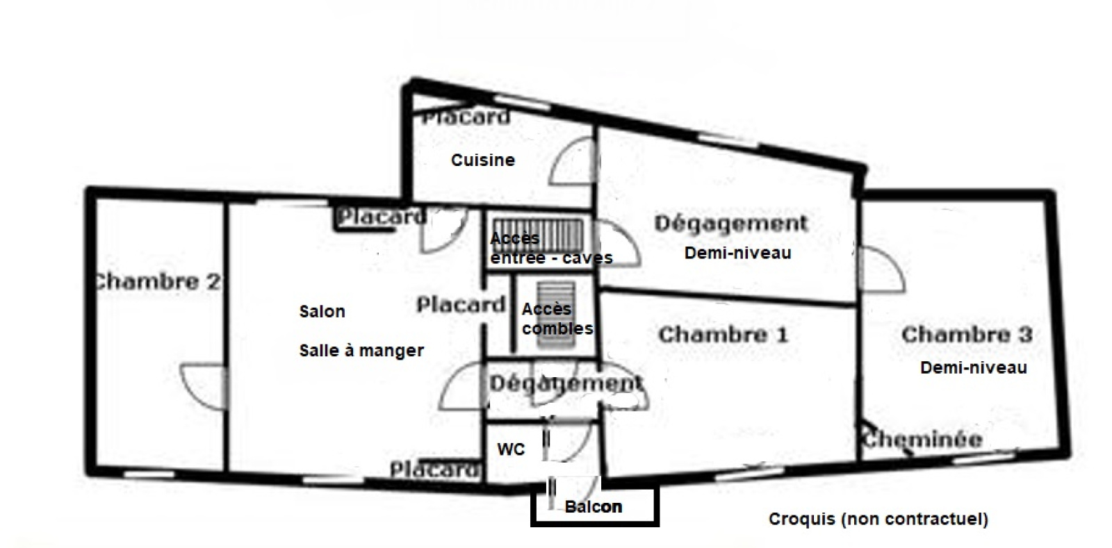 Pleine de charme avec ses carreaux de ciment, son entrée voûtée et son escalier en pierre, elle se compose d’un séjour lumineux de 19 m², de trois chambres, d’un petit balcon, et de demi-niveaux qui lui confèrent une atmosphère unique. Elle nécessitera une rénovation complète.