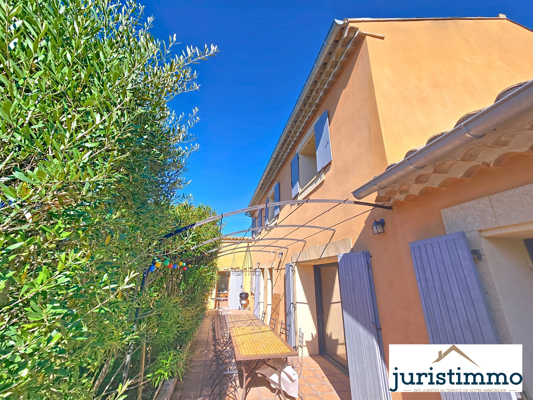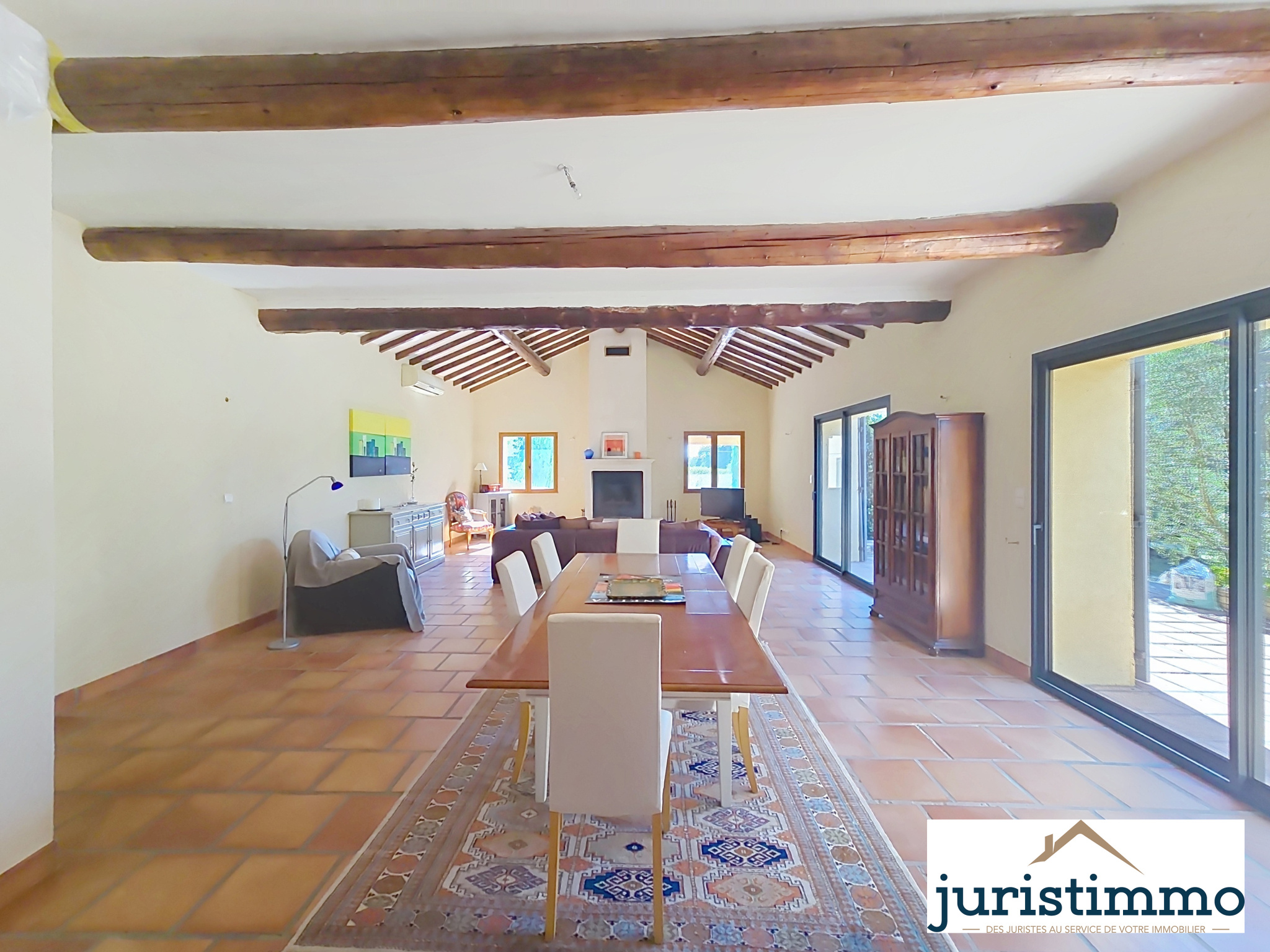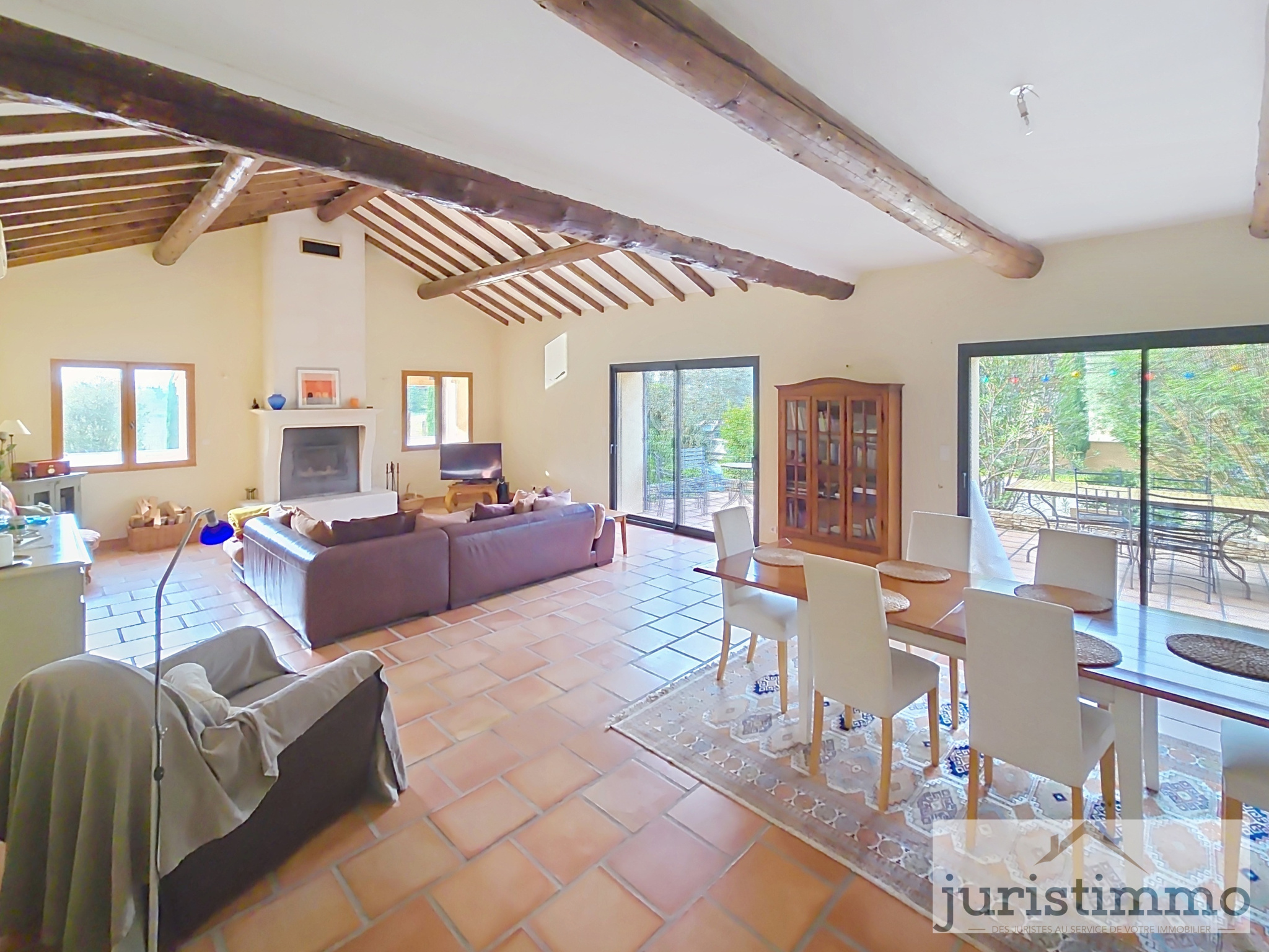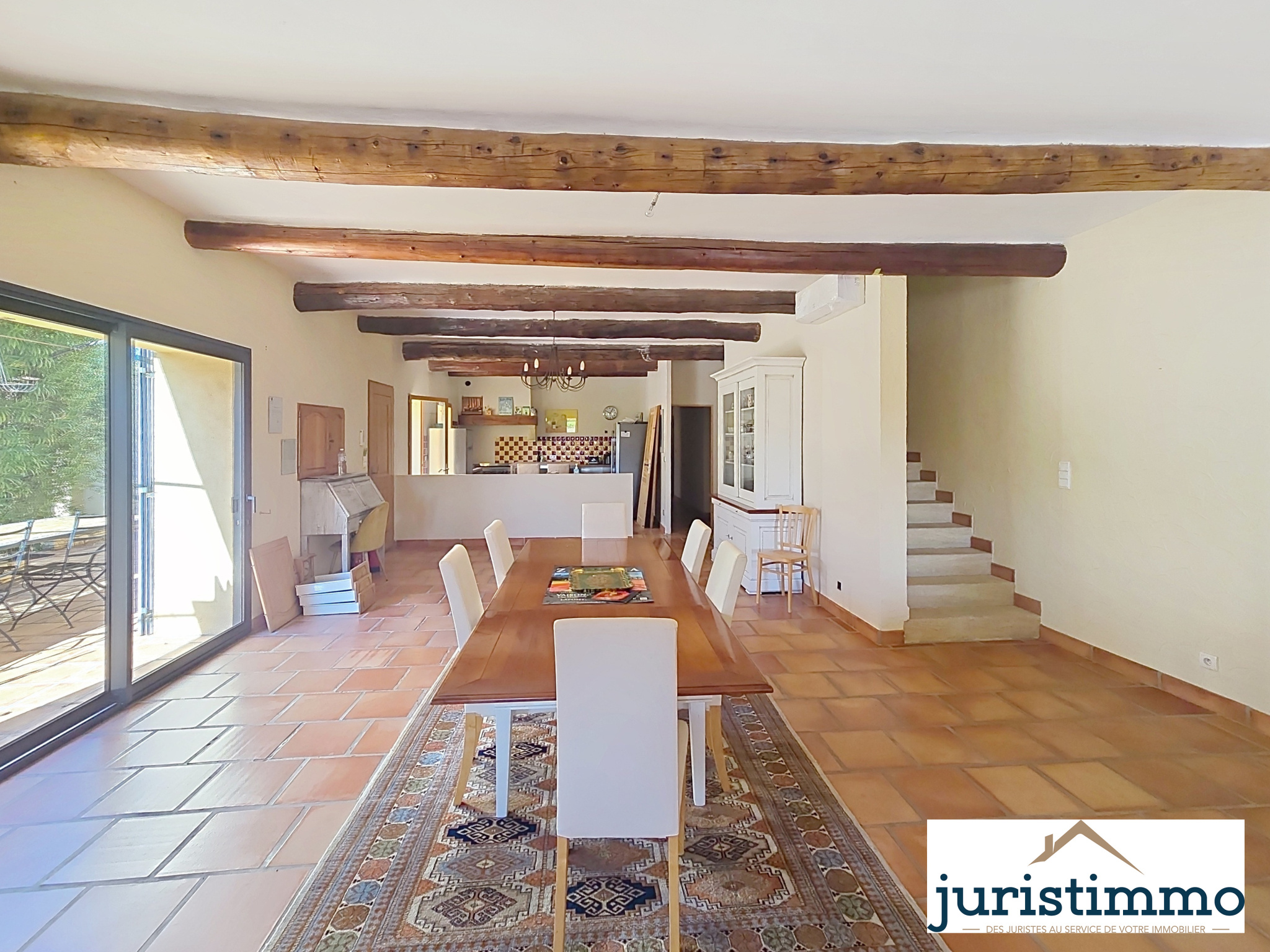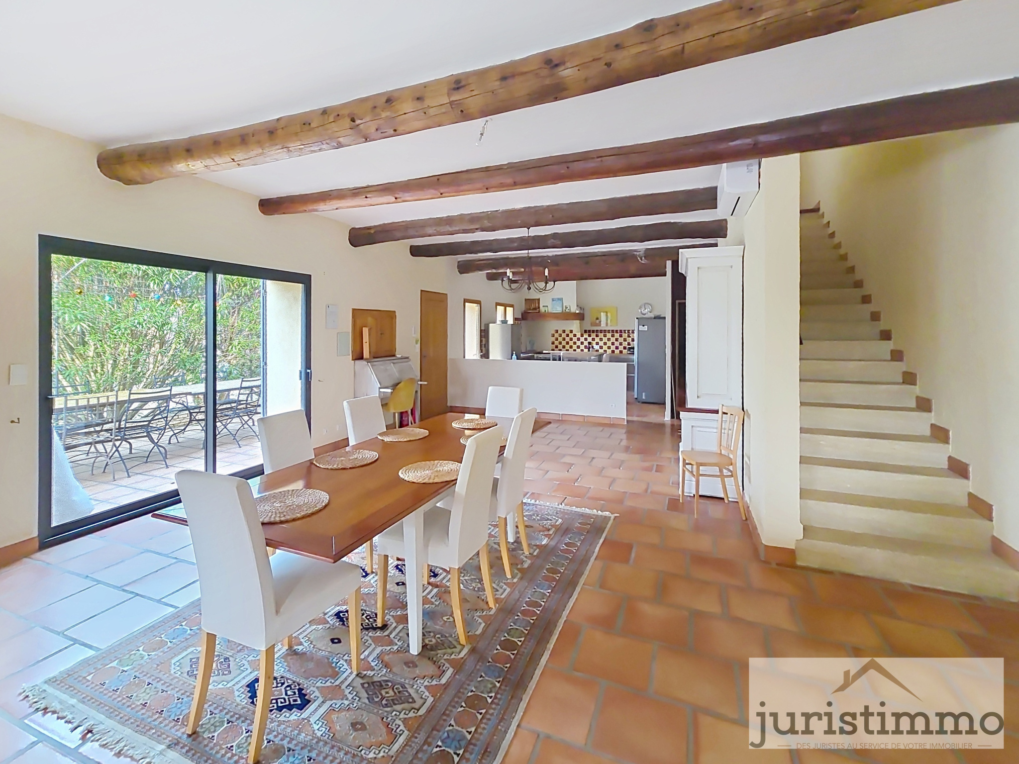 Juristimmo vous propose en exclusivité une belle maison de caractère, alliant authenticité et modernité, offre 190 m² habitables et une dépendance de 40 m² dans un cadre paisible et verdoyant sur un terrain de 1300 m2. Parfaite pour une grande famille, un projet de gîte ou une résidence principale au charme provençal. Dès l'entrée, vous serez séduit par une pièce de vie spacieuse et lumineuse d’environ 80 m², combinant : Une cuisine ouverte, équipée et aménagée, avec comptoir, idéale pour les moments conviviaux. Un espace salle à manger et un salon chaleureux, sublimés par des poutres apparentes, un sol en terre cuite, et une cheminée avec insert. Climatisation réversible pour un confort optimal été comme hiver.