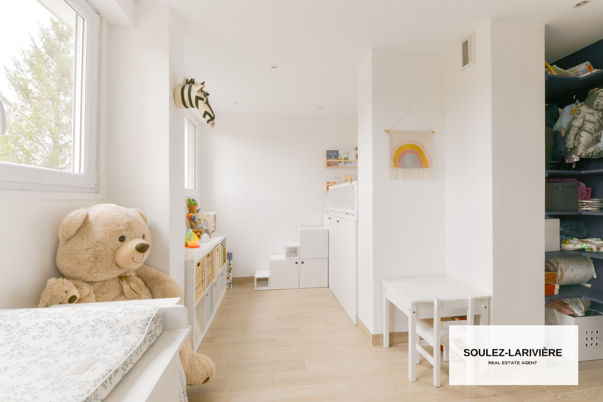 L’espace nuit comprend deux grandes chambres avec rangements intégrés, une salle d’eau contemporaine, un dressing et une buanderie.