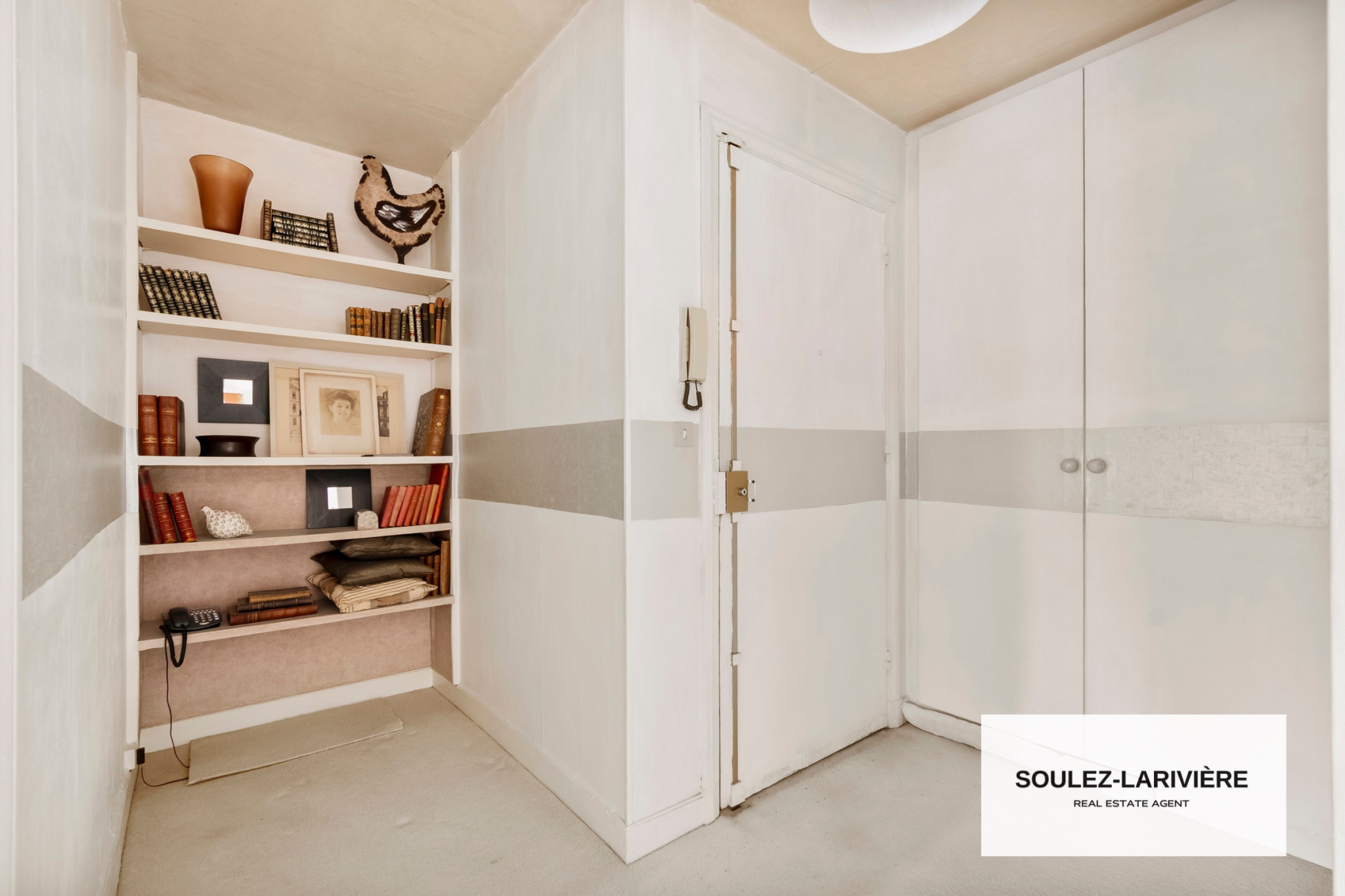 Il se compose d'une large entrée avec un dressing et des étagères de rangement, distribuant la pièce de vie de 34m2 comprenant une salle à manger et un salon avec cheminée donnant sur un balcon couvert exposé Ouest. À côté la salle à manger se situe la cuisine. Côté nuit, vous retrouverez trois chambres dont une suite parentale avec sa propre salle de bains et son dressing. L'appartement nécéssite un rafraichissement complet. Les fenêtres sont toutes en double vitrage.