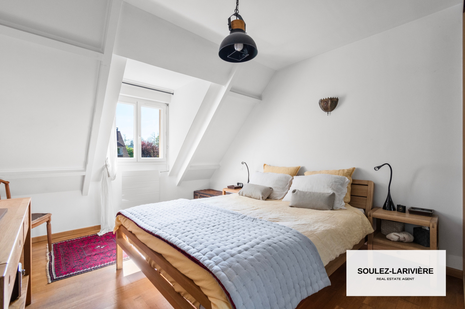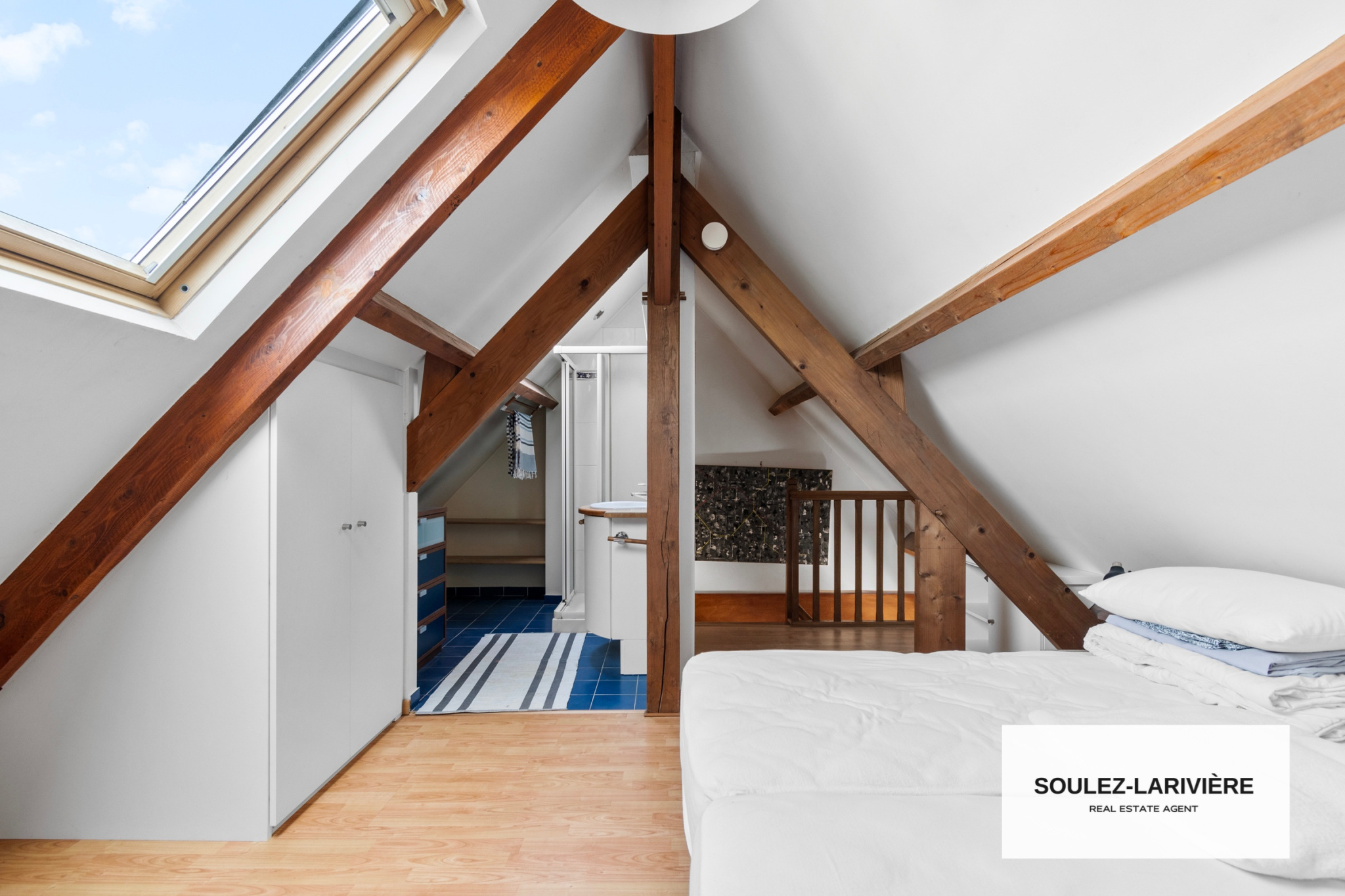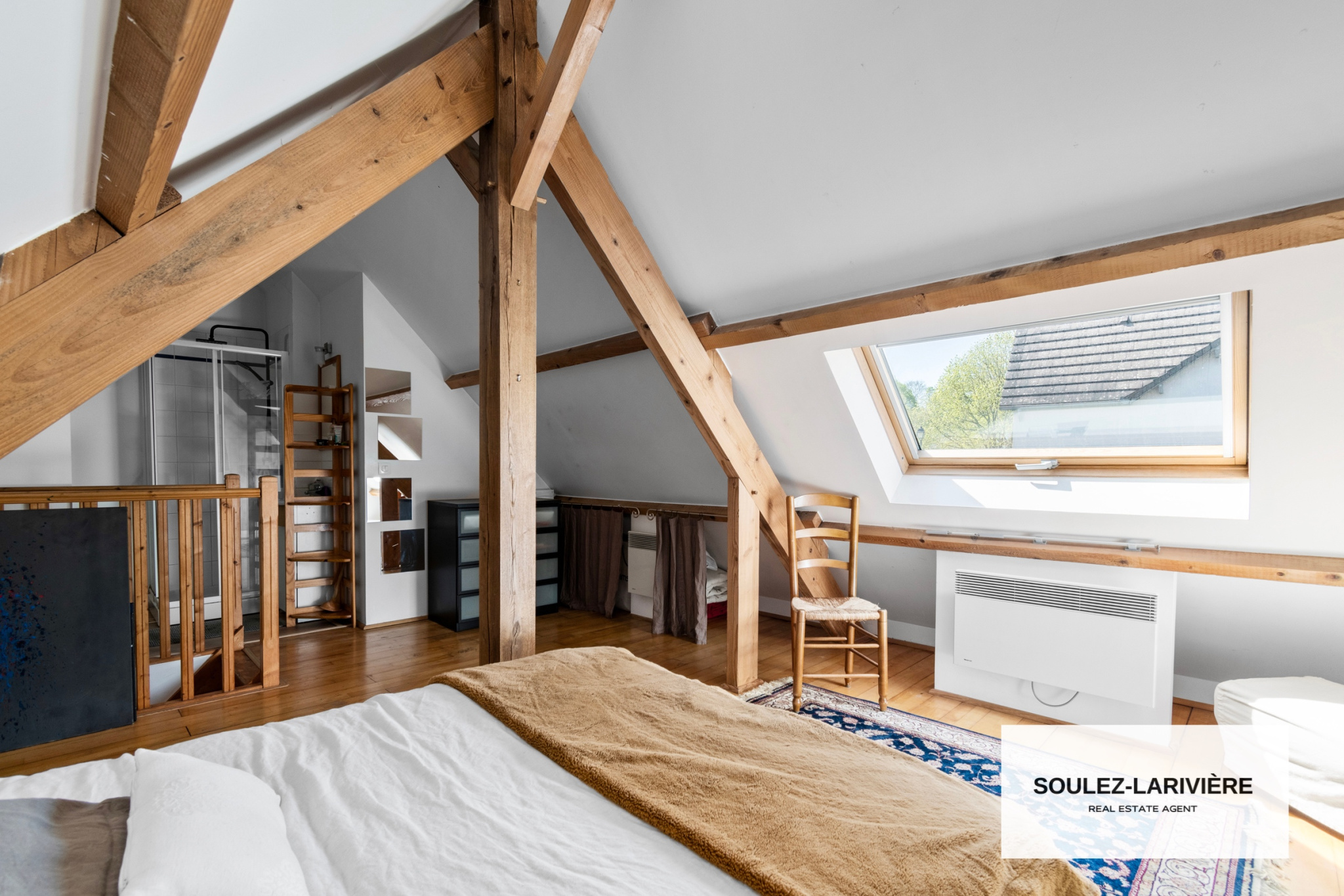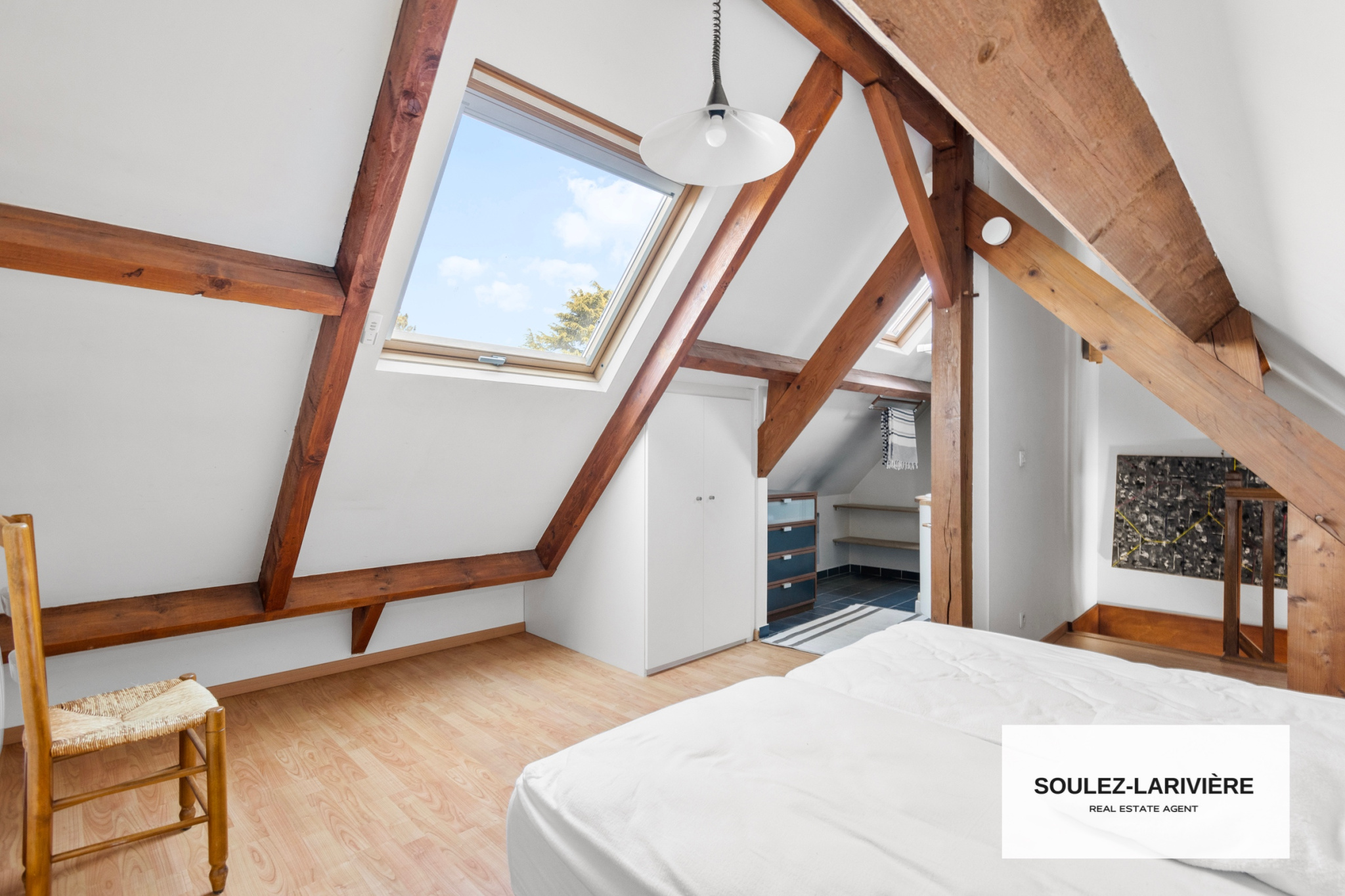 Au premier étage, vous retrouverez 2 chambres avec dressing intégré, un grand bureau avec dressing, une salle de bain moderne, un WC indépendant. Par l'escalier du bureau, vous trouverez une première suite de près de 20m2 au sol, sous comble avec salle d'eau, vasque et dressing.
